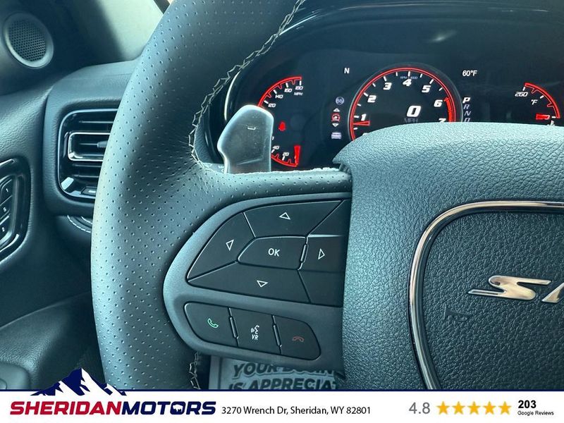 You'll never again be lost in a crowded city or a country region with the navigation system on this Dodge Durango. Apple CarPlay: Seamless smartphone integration for this Dodge Durango - stay connected and entertained on the go! Protect the Dodge Durango from unwanted accidents with a cutting edge backup camera system. Keep your hands warm all winter with a heated steering wheel in this vehicle . This vehicle offers Android Auto for seamless smartphone integration. The leather seats in this 2024 Dodge Durango are a must for buyers looking for comfort, durability, and style. It offers Automatic Climate Control for personalized comfort. Bluetooth technology is built into this model, keeping your hands on the steering wheel and your focus on the road. The vehicle has a V8, 6.4L high output engine. Load groceries and much more with ease into it thanks to the power liftgate. Greater towing safety becomes standard with the installed trailer brake.