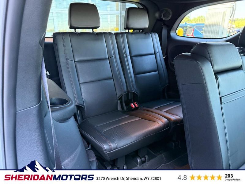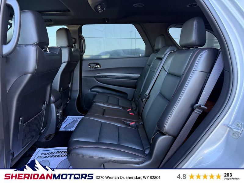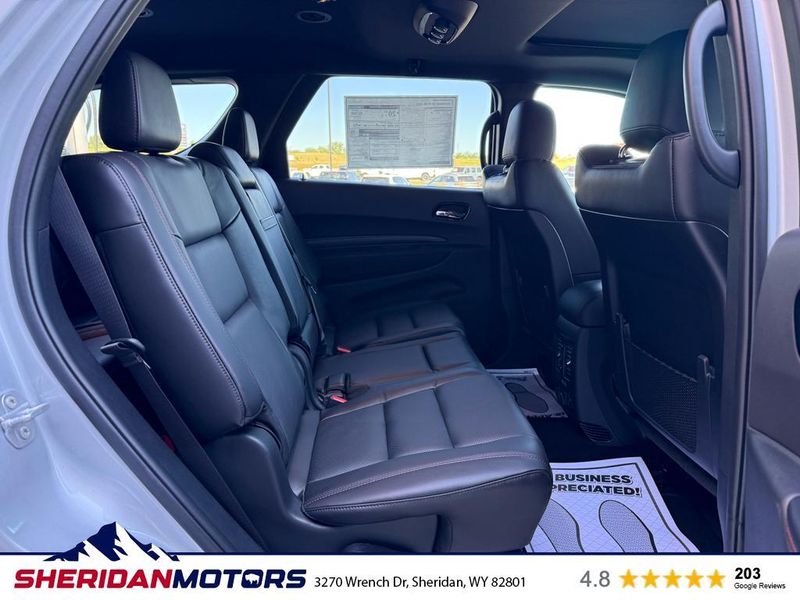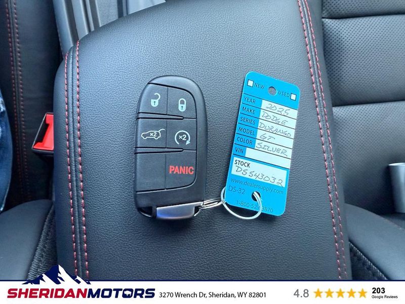 The Dodge Durango offers Android Auto for seamless smartphone integration. See what's behind you with the back up camera on this mid-size suv. Apple CarPlay: Seamless smartphone integration for this vehicle - stay connected and entertained on the go! The Dodge Durango's Forward Collision Warning feature alerts drivers to potential front-end collisions. This mid-size suv's Lane Departure Warning helps keep you in your lane. It features a hands-free Bluetooth phone system. The installed navigation system will keep you on the right path. This model has automated speed control that adjusts to maintain a safe following distance, enhancing highway driving convenience. The leather seats in this vehicle are a must for buyers looking for comfort, durability, and style. Keep your hands warm all winter with a heated steering wheel in this 2025 Dodge Durango . Greater towing safety becomes standard with the installed trailer brake. The vehicle has a V6, 3.6L high output engine.