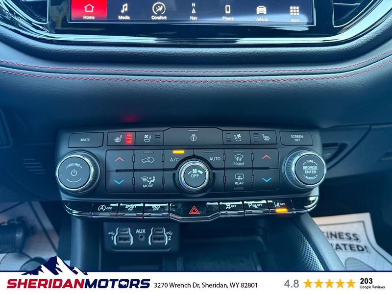 Quick Order Package 2BH GT Plus: Rear Load Leveling Suspension; Red Accent Stitching; Rain Sensitive Windshield Wipers; 7 and 4 Pin Wiring Harness; ParkSense Front/rear Park Assist with Stop; Integrated Roof Rail Crossbars; Power Driver/passenger 4-Way Lumbar Adjust; Bright Front Door Sill Scuff Pads; LED Auxiliary Low Beam and Turn Signal; Power Sunroof; 506 Watt Amplifier; Exterior Mirrors with Heating Element; Auto Dim Exterior Driver Mirror; Dual Remote USB Port - Charge Only; Trailer Brake Control; Heated Second Row Seats; Black Roof Rails; Class IV Receiver Hitch; Security Alarm; Blind Spot with Trailer Detection; Gloss Black Exterior Mirrors; Leather Trimmed Bucket Seats; Power 6x9 Multi-Function Foldaway Mirrors; Power Tilt and Telescopic Steering Column; 9 Alpine Amplified Speakers with Subwoofer; Advanced Brake Assist; 180 Amp Alternator; Heavy Duty Engine Cooling; Wireless Charging Pad; Exterior Mirrors with Supplemental Signals; Ventilated Front Seats; Full Speed Forward Collision Warning Plus; Bright Cargo Area Scuff Pads; Auto High Beam Headlamp Control; 115V Auxiliary Power Outlet; Exterior Mirrors with Memory; Adaptive Cruise Control with Stop; Leather Wrapped Door Panels; Sun Visors with Illuminated Vanity Mirrors; Lane Departure Warning Plus; Radio/driver Seat/mirrors Memory. Triple Nickel. Triple Nickel. **Equipment listed is based on original vehicle build and subject to change. Please confirm the accuracy of the included equipment by calling the dealer prior to purchase.**