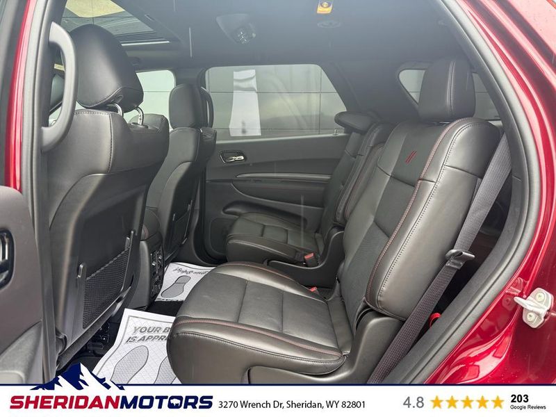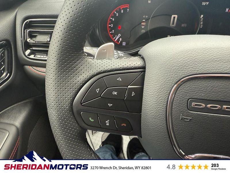 The Dodge Durango features a hands-free Bluetooth phone system. Protect this Dodge Durango from unwanted accidents with a cutting edge backup camera system. The vehicle has automated speed control that adjusts to maintain a safe following distance, enhancing highway driving convenience. Apple CarPlay: Seamless smartphone integration for it - stay connected and entertained on the go! The leather seats in this unit are a must for buyers looking for comfort, durability, and style. This mid-size suv is pure luxury with a heated steering wheel. The installed navigation system will keep you on the right path. This vehicle's Forward Collision Warning system alerts the driver to potential front-end collisions, enhancing safety. The Dodge Durango comes equipped with Android Auto for seamless smartphone integration on the road. A trailer braking system is already installed on the vehicle. Set the temperature exactly where you are most comfortable in this unit. The fan speed and temperature will automatically adjust to maintain your preferred zone climate.