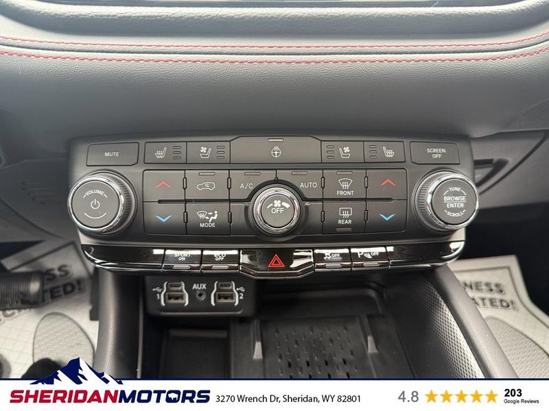Quick Order Package 22T R/T Plus: Red Accent Stitching; 7 and 4 Pin Wiring Harness; Integrated Roof Rail Crossbars; Power Driver/passenger 4-Way Lumbar Adjust; LED Auxiliary Low Beam and Turn Signal; Power Sunroof; Exterior Mirrors with Heating Element; Auto Dim Exterior Driver Mirror; Dual Remote USB Port - Charge Only; Trailer Brake Control; Heated Second Row Seats; Black Roof Rails; Class IV Receiver Hitch; Blind Spot with Trailer Detection; Floor Console with Leather Armrest; Gloss Black Exterior Mirrors; Leather Trimmed Bucket Seats; Power 6x9 Multi-Function Foldaway Mirrors; Power Tilt and Telescopic Steering Column; Exterior Mirrors with Supplemental Signals; Power 8-Way Driver Memory 8-Way Passenger Seats; Ventilated Front Seats; Full Speed Forward Collision Warning Plus; Auto High Beam Headlamp Control; 115V Auxiliary Power Outlet; Exterior Mirrors with Memory; Adaptive Cruise Control with Stop; Leather Wrapped Door Panels; Radio/driver Seat/mirrors Memory. 2nd Row Fold/tumble Captain Chairs. Octane Red Pearlcoat. **Equipment listed is based on original vehicle build and subject to change. Please confirm the accuracy of the included equipment by calling the dealer prior to purchase.**
