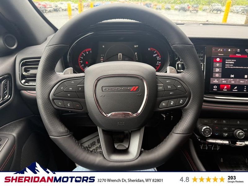 Discover the power and sophistication of the 2025 Dodge Durango R/T Plus, now available with AWD and a robust V8, 5.7L engine. Designed for those who demand performance and luxury, this SUV delivers an exhilarating driving experience without compromising on comfort or safety. Inside, you'll find premium leather seats that provide elegance and comfort, making every journey a pleasure. Stay connected and entertained with hands-free Bluetooth technology, allowing you to keep your focus on the road. The heated steering wheel ensures your hands stay warm during chilly drives, adding an extra layer of comfort to your commute. Safety is paramount in the 2025 Dodge Durango R/T Plus, equipped with advanced features like Forward Collision Warning to help prevent accidents before they happen. Navigate with confidence using the built-in navigation system, guiding you effortlessly to your destination. This vehicle is the perfect combination of performance, luxury, and modern technology. Experience the thrill and refinement of the 2025 Dodge Durango R/T Plus and elevate your driving experience. Visit our dealership today for a test drive and see how this exceptional SUV fits seamlessly into your lifestyle. Don't miss the opportunity to own a vehicle that truly stands out on the road.