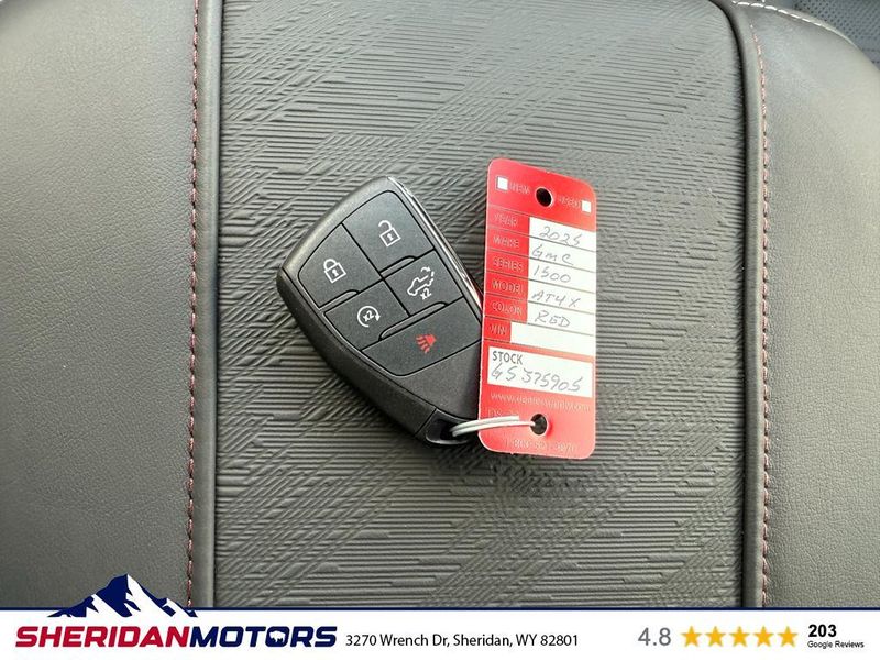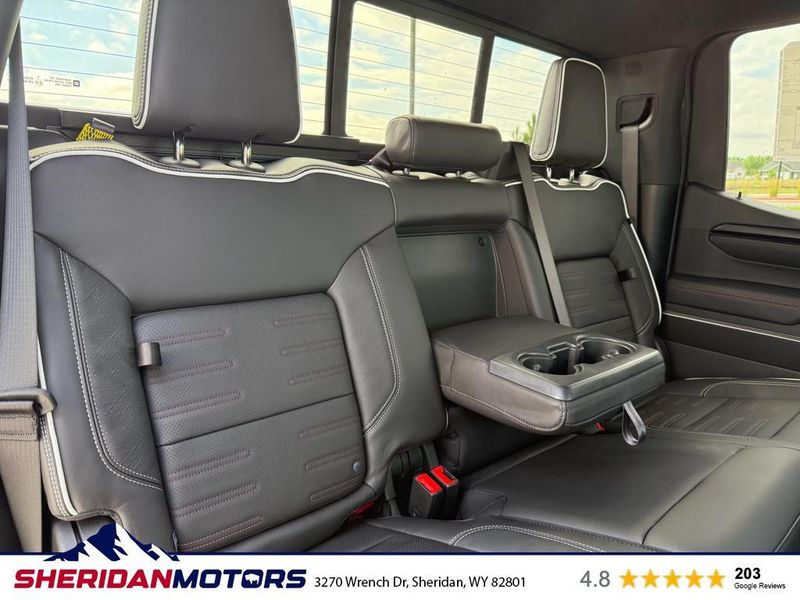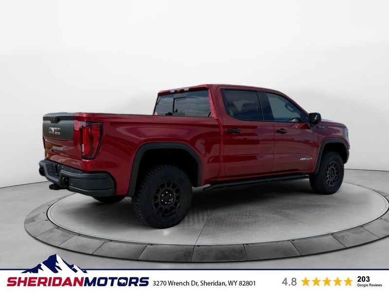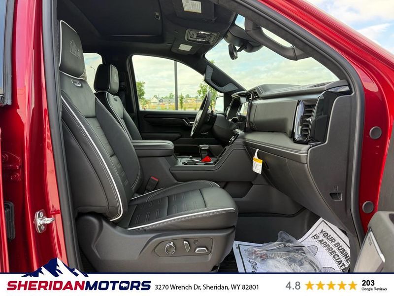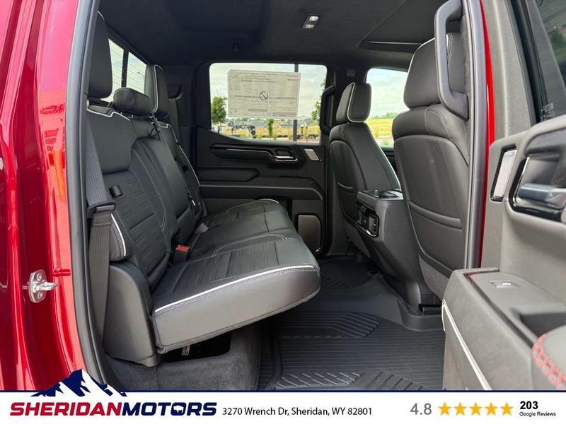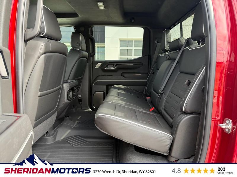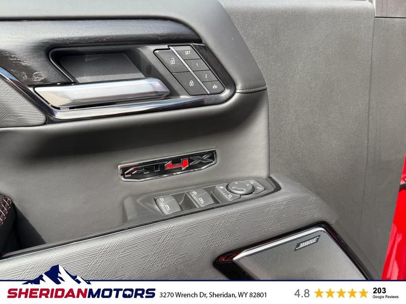 AT4X AEV Edition: 18" X 8.5" 12-Spoke High Gloss Black Aluminum Wheels; Rear Differential Skid Plate; AEV Tailgate Decal with Exterior Badging; Transfer Case Skid Plate; AEV Stamped-Steel Rear Bumper; AEV Branded Front Head Restraints; Front Skid Plate; Fuel Tank Skid Plate; Rocker Protection; 1st & 2nd Row AEV All-Weather Floor Liners (LPO); Gloss Black Door Handles. Preferred Equipment Group 4SG: Trailer Side Blind Zone Alert; Power Sliding Rear Window with Rear Defogger; Ultrasonic Front and Rear Park Assist; Trailer Camera Provisions; Electric Rear-Window Defogger; Theft Deterrent System (unauthorized Entry); Gloss Black Header with Dark Nickel Grille Insert Bars; Front Rain-Sensing Wipers; Heavy-Duty Air Filter; Skid Plates; 120-Volt Interior Power Outlet; Heated Driver and Front Outboard Passenger Seating; Wireless Charging; Front Premium Floor Liners with Removable Carpet Insert; Color-Keyed Carpeting Floor Covering; OnStar Services Capable; Driver-Selectable Full-Locking Front Differential; Heated 2nd Row Outboard Seats; Off-Road Suspension; Power Front Passenger Windows with Express Up/down; Driver-Selectable Full-Locking Rear Differential; Power Rear Windows with Express Down; Integrated Trailer Brake Controller; HD Surround Vision; Ventilated Driver and Front Passenger Seats; Power Rake and Telescoping Steering Column; Power Sunroof; Multicolor 15" Diagonal Head-Up Display; Keyless Open and Start; Bose Premium Series with 12- Speaker System; Perimeter Lighting; Push Button Start; LED Cargo Area Lighting; Remote Vehicle Starter System; In-Vehicle Trailering System App; Hill Descent Control; Floor-Mounted Center Console; MultiPro Tailgate Audio System by Kicker; Bed View Camera; Rear Cross Traffic Braking; Trailer Tire Pressure Monitor System; GMC Pro Safety; Trailering Package; 2 USB Ports; 2 Charge/data USB Ports Inside Center Console; Steering Wheel Audio Controls; 2 type-C Charge-Only Rear USB Ports; Universal Home Remote; 2-Speed Transfer Case; Deep-Tinted Glass; Spray-On Pickup Bedliner with GMC Logo; SiriusXM with 360L Trial Subscription; Hitch View; Power Front Windows with Driver Express Up/down; Rear Pedestrian Detection; Wi-Fi Hotspot Capable; Rear Wheelhouse Liners; Power Door Locks. Rocker Protection. Volcanic Red Tintcoat. Dual Active Exhaust. 3 Years SiriusXM. **Equipment listed is based on original vehicle build and subject to change. Please confirm the accuracy of the included equipment by calling the dealer prior to purchase.**