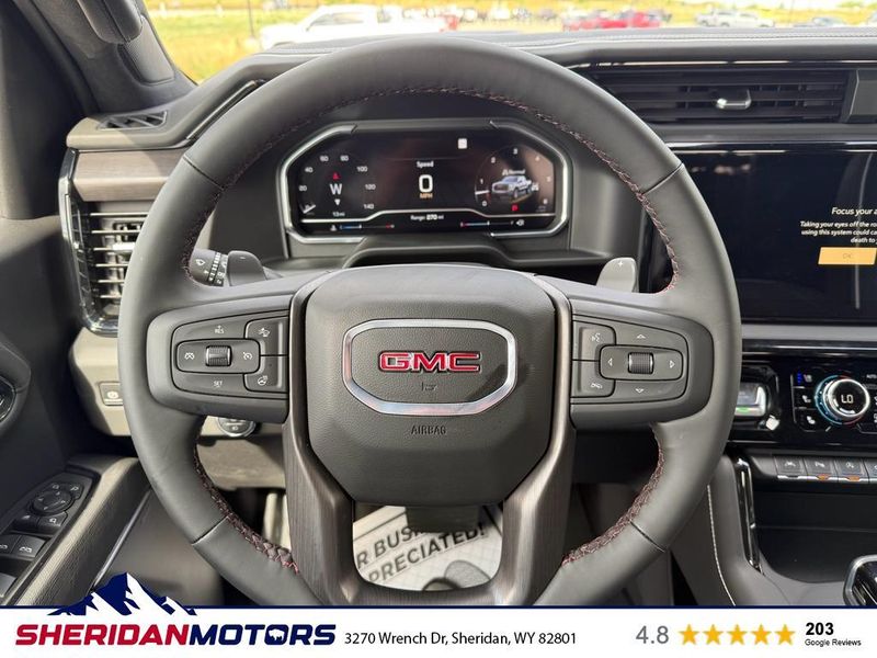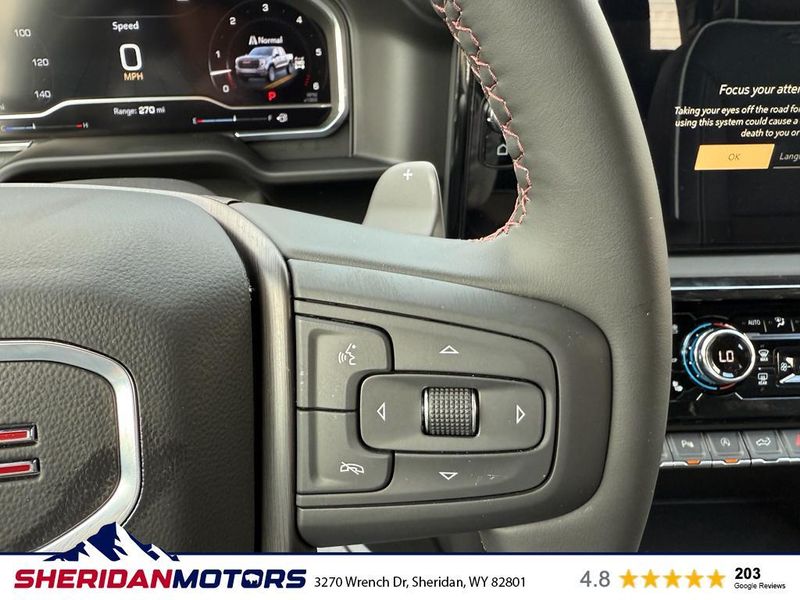 See what's behind you with the back up camera on this unit. Start this 2025 GMC Sierra 1500 from inside with remote start. This GMC Sierra features steering wheel audio controls. This GMC Sierra stays safely in its lane with Lane Keep Assist. This unit has automated speed control that adjusts to maintain a safe following distance, enhancing highway driving convenience. An off-road package is installed on the GMC Sierra so you are ready for your four-wheeling best. You'll never again be lost in a crowded city or a country region with the navigation system on this 2025 GMC Sierra 1500. Keep your hands warm all winter with a heated steering wheel in the vehicle . This vehicle is equipped with the latest generation of XM/Sirius Radio. The leather seats in this unit are a must for buyers looking for comfort, durability, and style. The vehicle's Lane Departure Warning helps keep you in your lane.