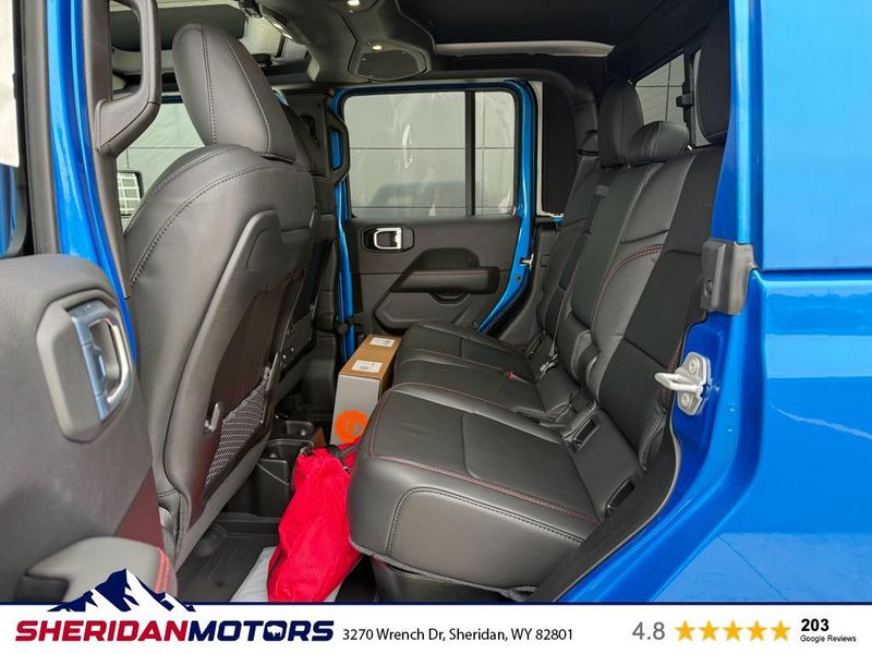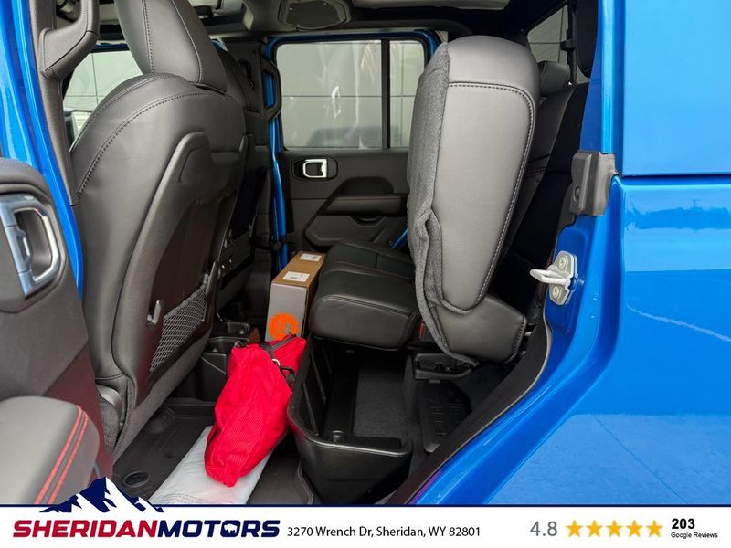 Convenience Group: SiriusXM Radio Service; Remote Start System; SiriusXM with 360L; Universal Garage Door Opener; Heated Front Seats; Heated Steering Wheel. Quick Order Package 24R Rubicon. Steel Bumper Group: Steel Front Bumper. Power Adjust Nappa Leather Seats. Body Color 3-Piece Hard Top. MOPAR Hardtop Headliner. Hydro Blue Pearlcoat. MOPAR Spray in Bedliner. MOPAR Tool Kit Jpp/jeep. MOPAR Performance Satin Black Grille. Jeep Trail Rated Kit. MOPAR All-Weather Slush Mats. **Equipment listed is based on original vehicle build and subject to change. Please confirm the accuracy of the included equipment by calling the dealer prior to purchase.**
