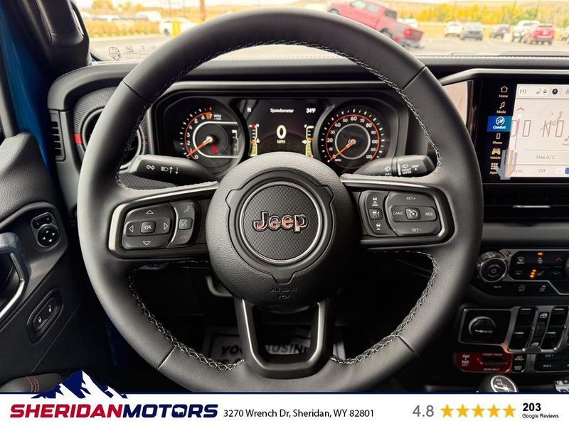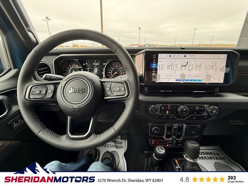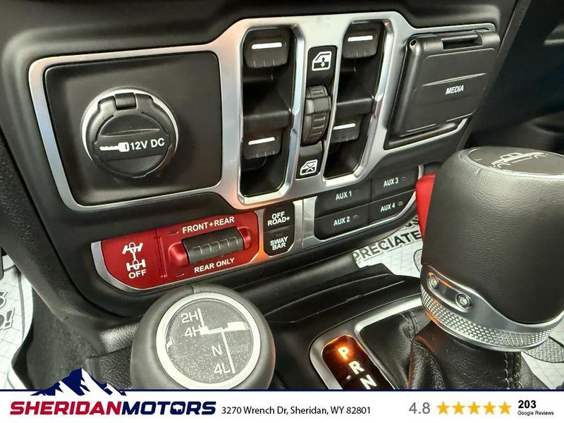 Discover the 2025 Jeep Gladiator Rubicon 4WD in Sheridan, WY ? the ultimate blend of rugged capability and everyday comfort at the best price around. Powered by a responsive V6 3.6L gasoline engine and paired with a confident 4-wheel drive system, this Jeep Gladiator Rubicon is built to tackle Wyoming trails, rocky backroads, and city streets with equal poise. The legendary off-road pedigree is enhanced by a dedicated Off-Road Package, delivering upgraded suspension, heavy-duty components, and trail-ready performance for serious adventurers. Inside, enjoy modern conveniences designed for life on the go. Automatic Climate Control keeps the cabin comfortable in changing weather, while Remote Start lets you warm up or cool down from a distance. Stay connected and entertained with seamless Apple CarPlay integration and a crisp Back-Up Camera for easier parking and trail maneuvers. The Rubicon?s durable interior and smart storage solutions provide practical space for gear, tools, and weekend essentials. Located in Sheridan, WY, this Jeep Gladiator Rubicon represents outstanding value ? priced to move quickly and offering the best price in the area for a 2025 model with these premium features. Whether you?re planning off-road excursions, daily commuting, or hauling gear, this Jeep Gladiator Rubicon 4WD V6 3.6L is ready to elevate every drive. Contact us today to schedule a test drive and see why this is the best-priced Jeep Gladiator in Sheridan.