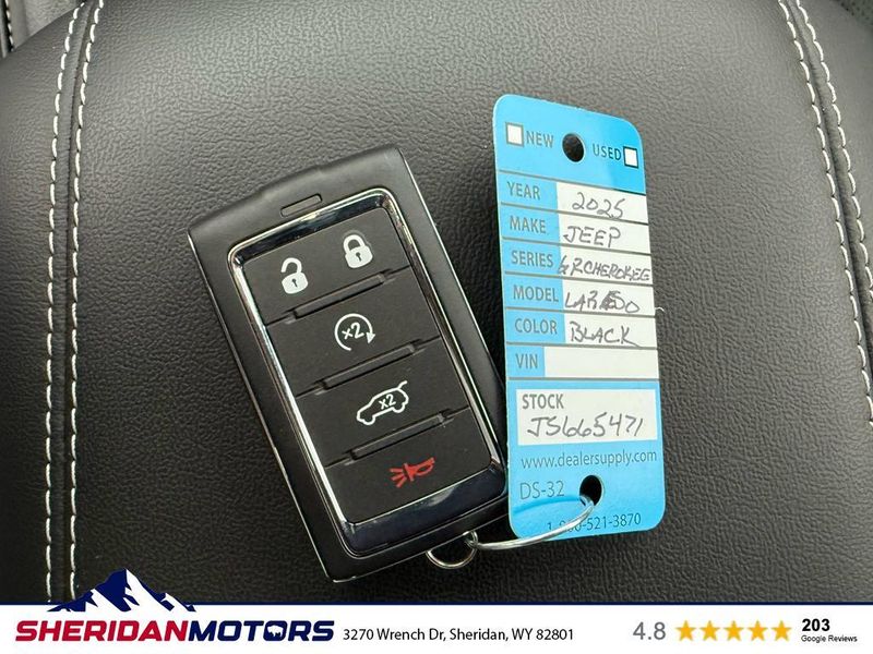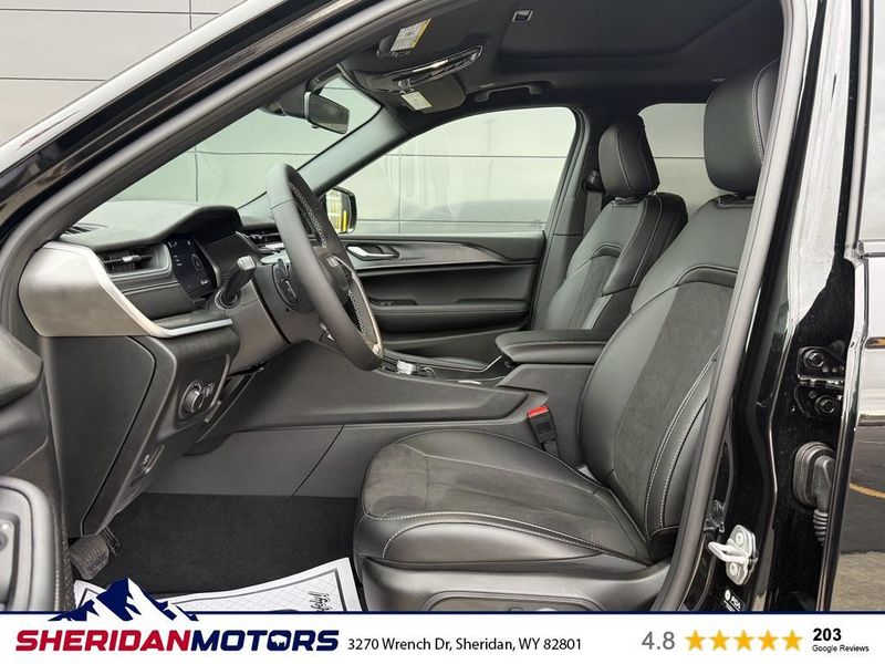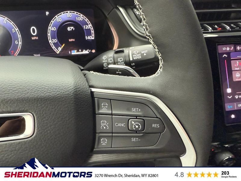 Quick Order Package 23M Altitude X: Altitude X; Selectable Tire Fill Alert; Remote Start System; Rain Sensitive Windshield Wipers; Wireless Charging Pad; Heated Front Seats; Black Headliner; Power Sunroof; Delete Laredo Badge; 3rd Row Charge-Only USB Ports; 115V Auxiliary Power Outlet; Gloss Black Exterior Accents; Capri Leatherette/suede Seats; Heated Steering Wheel; Power Liftgate. 20" X 8.5" Gloss Black Painted Aluminum Wheels. Diamond Black Crystal PC. **Equipment listed is based on original vehicle build and subject to change. Please confirm the accuracy of the included equipment by calling the dealer prior to purchase.**