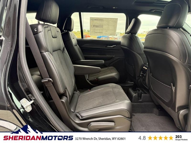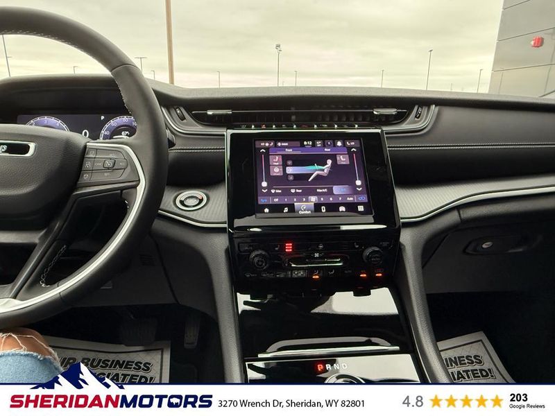 This vehicle offers Apple CarPlay for seamless connectivity. This model offers Android Auto for seamless smartphone integration. The leather seats in it are a must for buyers looking for comfort, durability, and style. Start the Jeep Grand Cherokee L from inside with remote start. This unit features a hands-free Bluetooth phone system. See what's behind you with the back up camera on this 2025 Jeep Grand Cherokee L . This Jeep Grand Cherokee L has auto-adjust speed for safe following. This Jeep Grand Cherokee L's Forward Collision Warning feature alerts drivers to potential front-end collisions. Keep your hands warm all winter with a heated steering wheel in the vehicle . Maintaining a stable interior temperature in this model is easy with the climate control system. This mid-size suv has four wheel drive capabilities. This 2025 Jeep Grand Cherokee L has an elegant black exterior finish. This unit has a V6, 3.6L high output engine.