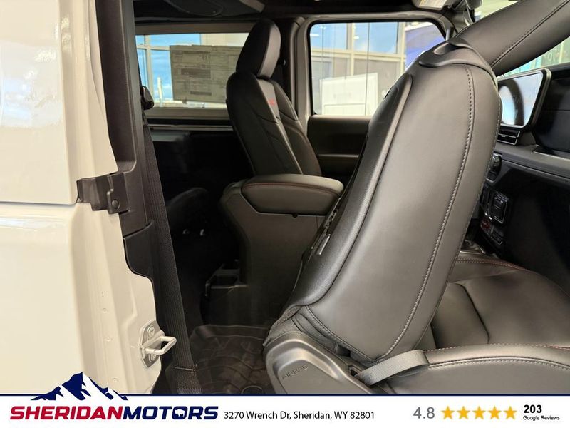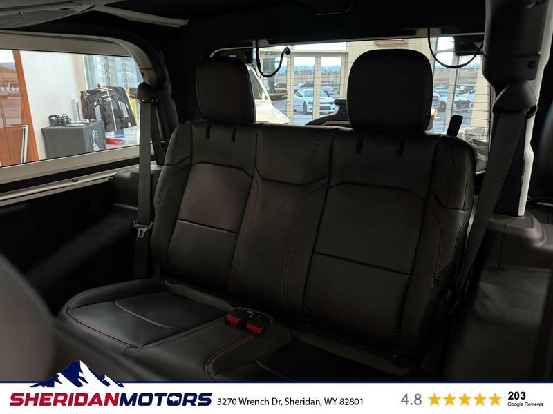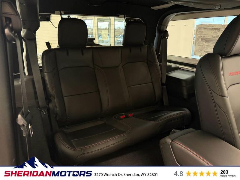 Quick Order Package 23Y Rubicon X: Google Android Auto; SiriusXM Radio Service; Blind Spot and Cross Path Detection; Rear View Auto Dim Mirror; Heated Front Seats; Integrated Voice Command with Bluetooth; Connectivity - US/Canada; GPS Navigation; 4G LTE Wi-Fi Hot Spot; SiriusXM with 360L; Connected Travel and Traffic Services; Acoustic Front Seat Area Carpet; Heated Steering Wheel; Body Color Rubicon Highline Flare; Apple CarPlay; Steel Front Bumper; 12.3" Touchscreen Display; Alpine Premium Audio System; Integrated Off-Road Camera; HD Radio; Body Color 3-Piece Hard Top; Uconnect 5 Navigation with 12.3" Display; Auto High Beam Headlamp Control; Universal Garage Door Opener; Nappa Leather Seats; Acoustic Laminated Front Door Glass; ParkSense Rear Park Assist System; Trailer Tow Prep Package; MOPAR Hardtop Headliner; Steel Rear Bumper. Trailer Tow and Auxiliary Switch Group: Class II Receiver Hitch; Auxiliary Switches. 17" X 7.5" Machined with Black Pockets Wheels. Jeep Trail Rated Kit. MOPAR All-Weather Floor Mats. **Equipment listed is based on original vehicle build and subject to change. Please confirm the accuracy of the included equipment by calling the dealer prior to purchase.**