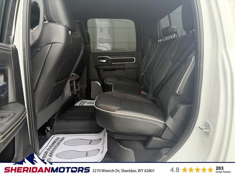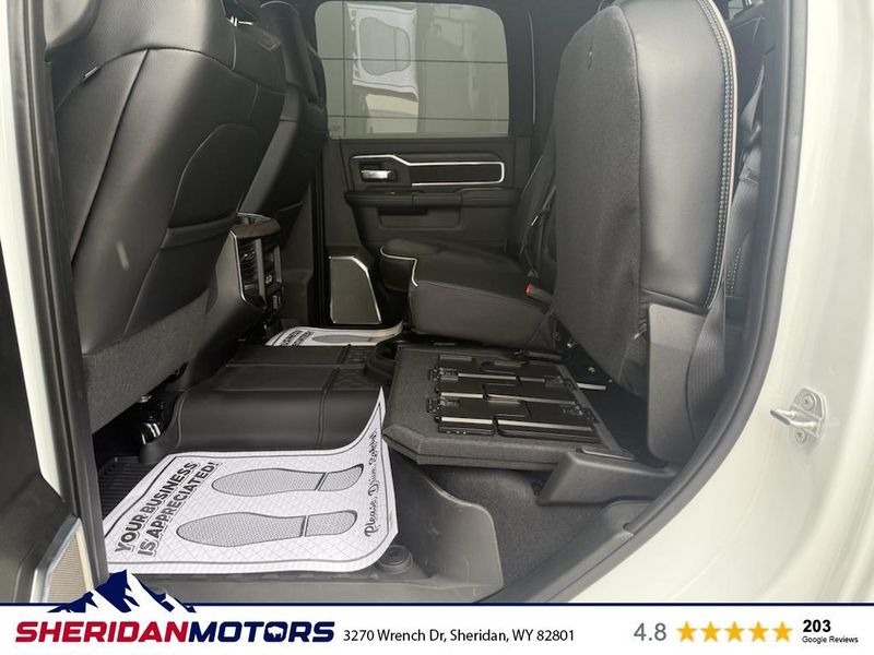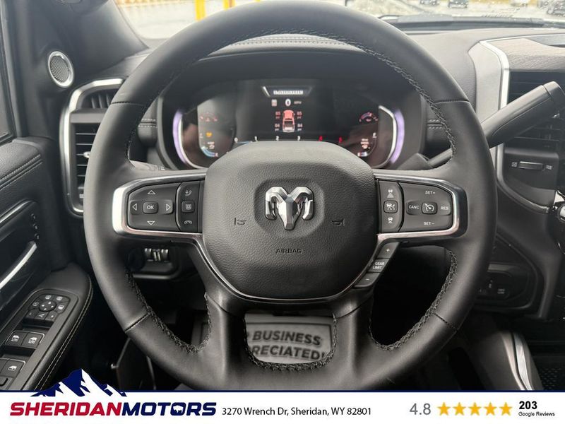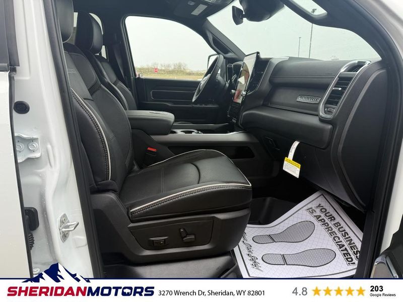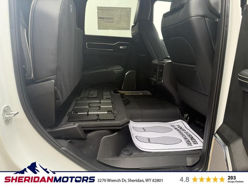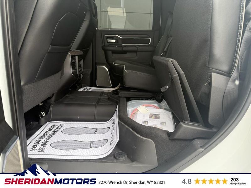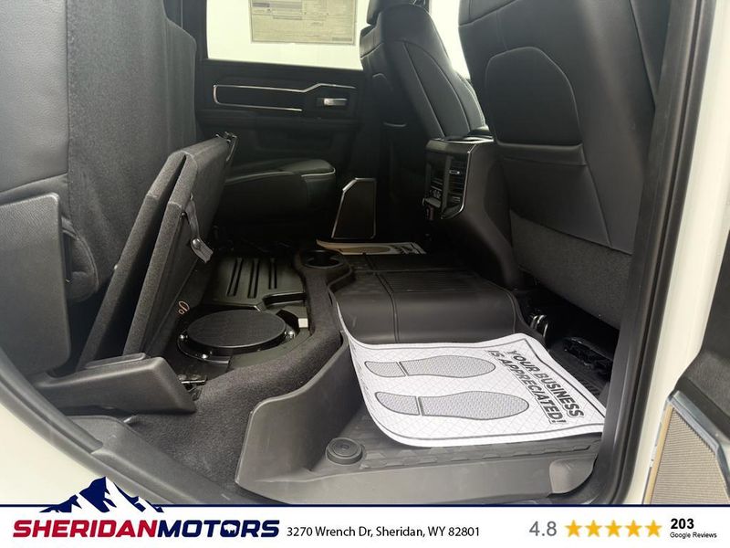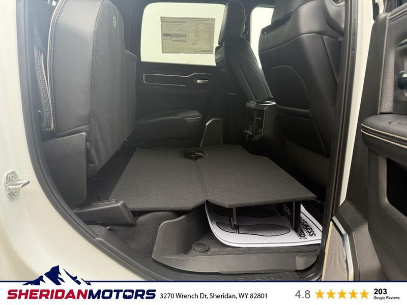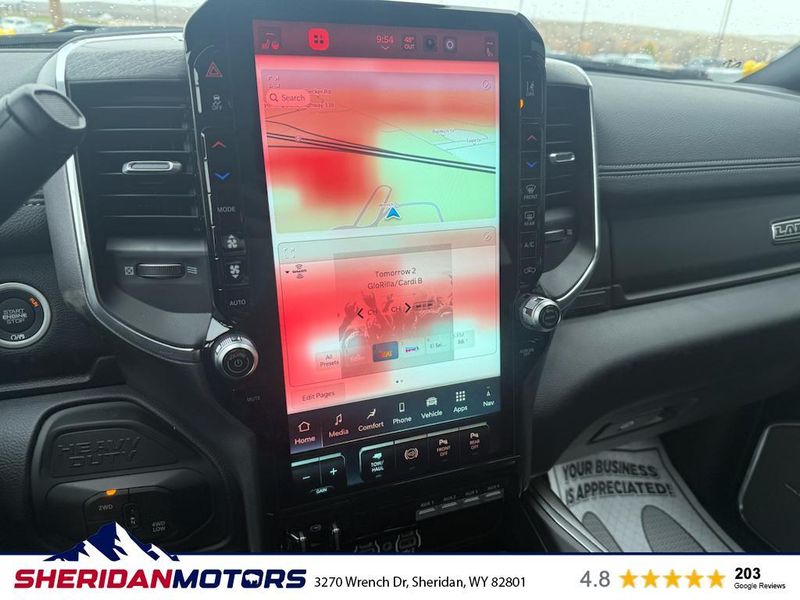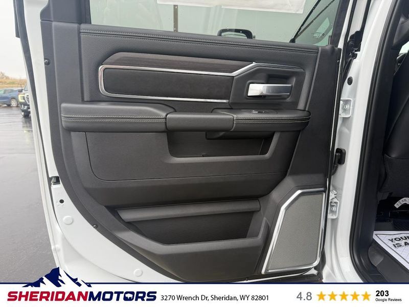 Cold Weather Group: Engine Block Heater; MOPAR Winter Front Grille Cover. Laramie Level 2 Plus Equipment Group: Google Android Auto; SiriusXM Radio Service; Power Adjustable Pedals with Memory; For Details Visit DriveUconnect.com; For More Info. Call 800-643-2112; Integrated Voice Command with Bluetooth; Emergency Vehicle Alert System (EVAS); Power Deployable Running Boards; Auto Power-Folding Mirrors; Mirror Running Lights; Drowsy Driver Detection; MOPAR Deployable Bed Step; Alexa Built-In; Apple CarPlay; Power-Adjustable Convex Aux Mirrors; Active Lane Management System; Forward and Reverse Utility Lights; Disassociated Touchscreen Display; Remote Tailgate Release; 17 Speaker Harman/kardon Premium Sound; #1 Seat Foam Cushion; 2nd Row in Floor Storage Bins; Center Stop Lamp with Cargo View Camera; Rain Sensitive Windshield Wipers; LED Bed Lighting; Traffic Sign Recognition; Connectivity - US/Canada; GPS Navigation; 4G LTE Wi-Fi Hot Spot; Adaptive Steering System; GPS Antenna Input; Exterior Mirrors with Heating Element; Auto Dimming Exterior Mirrors; SiriusXM with 360L; Global Telematics Box Module; Connected Travel and Traffic Services; Foam Bottle Insert (door Trim Panel); Off-Road Information Pages; Selectable Tire Fill Alert; Trailer Tow Pages; Leather Trimmed Bucket Seats; HD Radio; 14.4" Touchscreen Display; Power Heat Fold Memory Telescopic Mirrors; Exterior Mirrors with Supplemental Signals; Exterior Mirrors Courtesy Lamps; Uconnect 5 Nav with 14.4" Display; MOPAR Spray in Bedliner; Auto High Beam Headlamp Control; Chrome Exterior Mirrors; Exterior Mirrors with Memory; Power Adjust Mirrors; Power Telescoping Mirrors; Auto Dimming Exterior Passenger Mirror; Auto Adjust in Reverse Exterior Mirrors. Quick Order Package 24H Laramie. Towing Technology Group: Center Stop Lamp with Cargo View Camera; Surround View Camera System; Trailer Tire Pressure Monitoring System; Trailer Reverse Guidance. Chrome Bumper Package: Bright Rear Bumper; Bright Front Bumper. Power Deployable Running Boards. Leather Trimmed Bucket Seats. Center Stop Lamp with Cargo View Camera. 50 Gallon Fuel Tank. Instrument Panel Mounted Auxiliary Switches. MOPAR Front and Rear Rubber Floor Mats. Transfer Case Skid Plate Shield. **Equipment listed is based on original vehicle build and subject to change. Please confirm the accuracy of the included equipment by calling the dealer prior to purchase.**