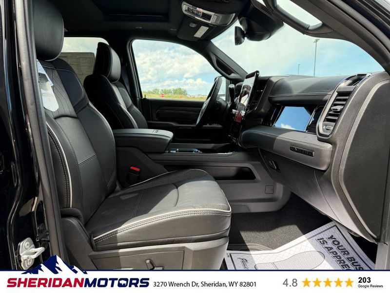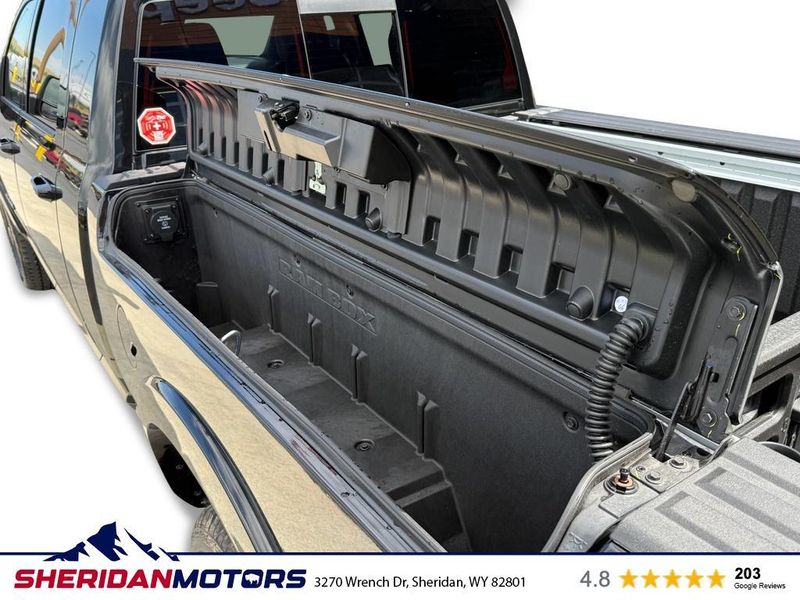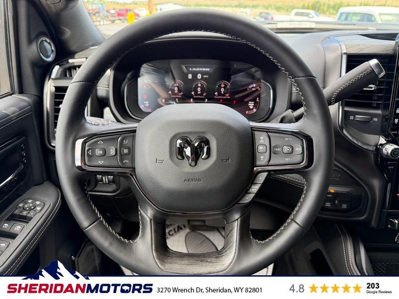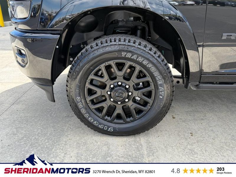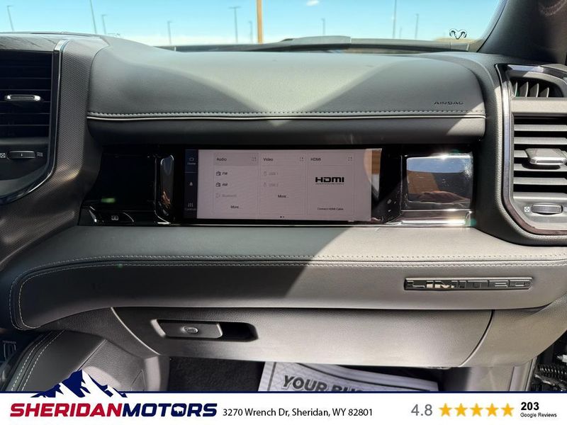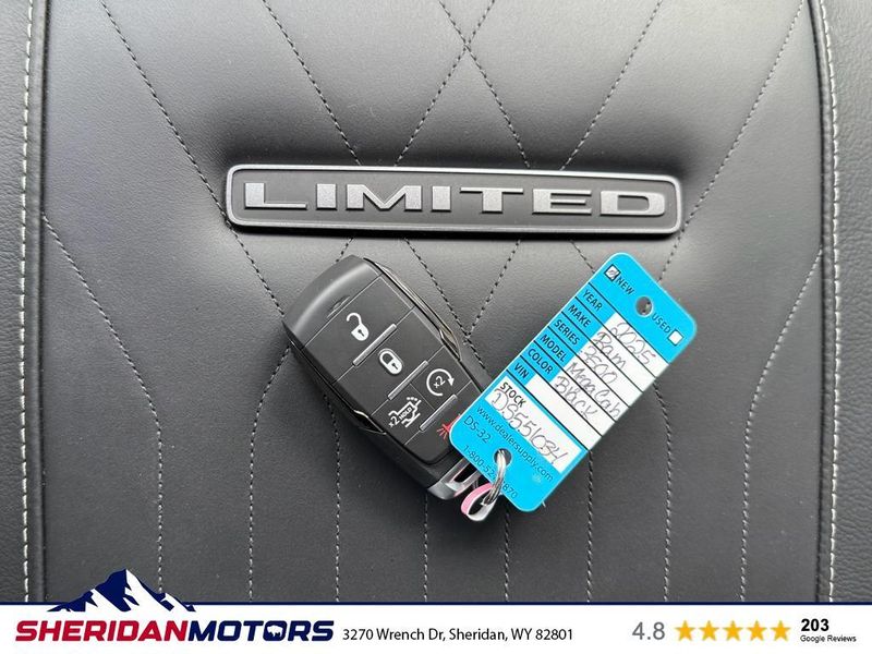 Cold Weather Group: Engine Block Heater; MOPAR Winter Front Grille Cover. Limited Level 1 Equipment Group: Active Lane Management System; MOPAR Spray in Bedliner; Center Stop Lamp with Cargo View Camera; Surround View Camera System; Drowsy Driver Detection; LED Bed Lighting; Power Deployable Running Boards; Traffic Sign Recognition; Trailer Tire Pressure Monitoring System; Trailer Reverse Guidance; Digital Rearview Mirror; Adaptive Steering System. Night Edition: 20" X 8" Night Edition Black Aluminum Wheels; Black Exterior Truck Badging; Body Color Grille Surround; Sport Performance Hood; Black Grille Limited; Black Wheel Center Hub. Quick Order Package 24M Limited. Power Sunroof. Instrument Panel Mounted Auxiliary Switches. Diamond Black Crystal PC. Transfer Case Skid Plate Shield. **Equipment listed is based on original vehicle build and subject to change. Please confirm the accuracy of the included equipment by calling the dealer prior to purchase.**