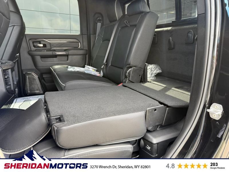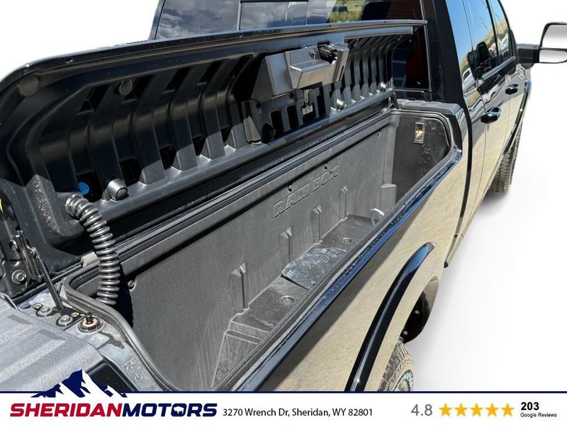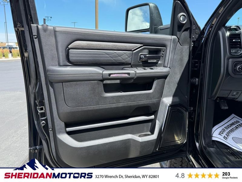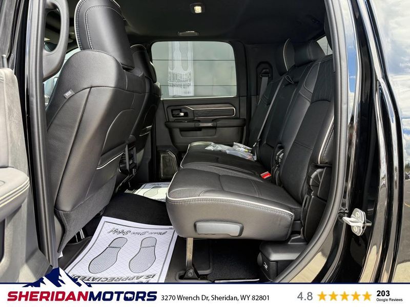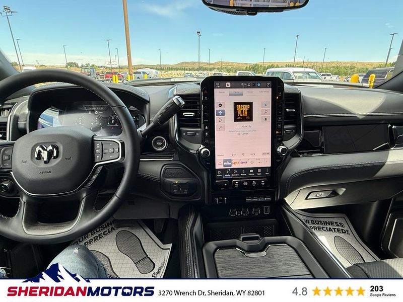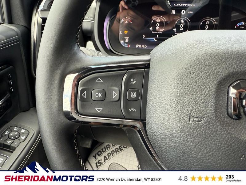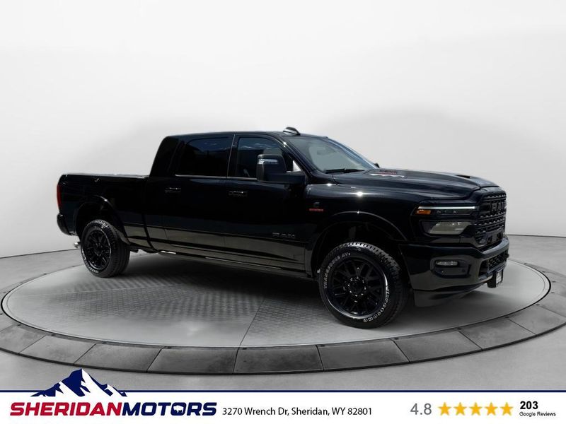Cold Weather Group: Engine Block Heater; MOPAR Winter Front Grille Cover. Limited Level 1 Equipment Group: Active Lane Management System; MOPAR Spray in Bedliner; Center Stop Lamp with Cargo View Camera; Surround View Camera System; Drowsy Driver Detection; LED Bed Lighting; Power Deployable Running Boards; Traffic Sign Recognition; Trailer Tire Pressure Monitoring System; Trailer Reverse Guidance; Digital Rearview Mirror; Adaptive Steering System. Night Edition: 20" X 8" Night Edition Black Aluminum Wheels; Black Exterior Truck Badging; Body Color Grille Surround; Sport Performance Hood; Black Grille Limited; Black Wheel Center Hub. Quick Order Package 24M Limited. Power Sunroof. Instrument Panel Mounted Auxiliary Switches. Diamond Black Crystal PC. Transfer Case Skid Plate Shield. **Equipment listed is based on original vehicle build and subject to change. Please confirm the accuracy of the included equipment by calling the dealer prior to purchase.**