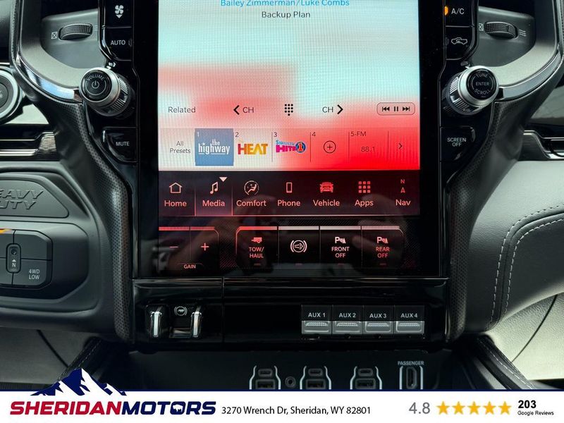 The installed navigation system will keep you on the right path. Bluetooth technology is built into the vehicle, keeping your hands on the steering wheel and your focus on the road. Protect it from unwanted accidents with a cutting edge backup camera system. It's Forward Collision Warning feature alerts drivers to potential front-end collisions. This 1 ton pickup offers Apple CarPlay for seamless connectivity. This model has auto-adjust speed for safe following. This vehicle comes equipped with Android Auto for seamless smartphone integration on the road. Keep your hands warm all winter with a heated steering wheel in the vehicle . The leather seats in this unit are a must for buyers looking for comfort, durability, and style. When you encounter slick or muddy roads, you can engage the four wheel drive on this model and drive with confidence. Maintaining a stable interior temperature in it is easy with the climate control system.