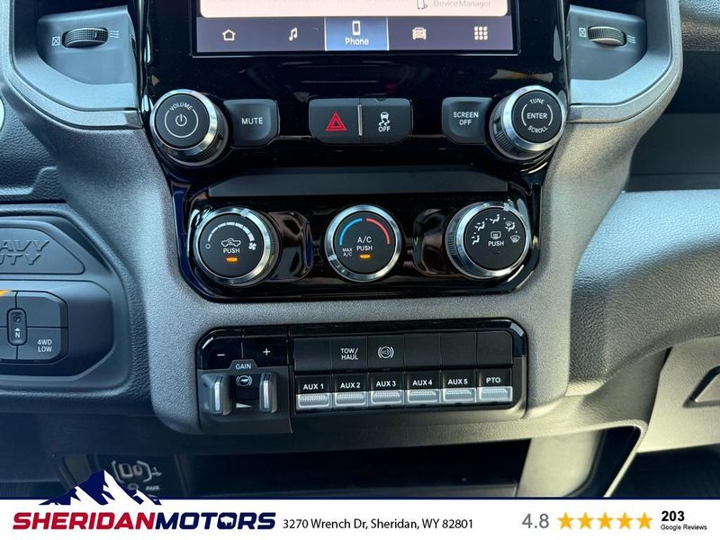 Cold Weather Group: Engine Block Heater; MOPAR Winter Front Grille Cover. Tradesman Level 1 Equipment Group: Rear Window Defroster; Black Power Heated Fold Telescope Mirrors; Exterior Mirrors with Supplemental Signals; Exterior Mirrors Courtesy Lamps; Manual Folding Exterior Mirrors; Trailer Light Check; Exterior Mirrors with Heating Element; Trailer Brake Control; Mirror Running Lights; Manuarl Telescoping Mirrors; Power Adjust Mirrors; Black Exterior Mirrors; Power-Adjustable Convex Aux Mirrors. Quick Order Package 25A Tradesman. 225/70R19.5G Off Road Tires. 52 and 22 Gallon Dual Fuel Tanks. ParkView Rear Back-Up Camera. Full Size Spare Tire. Manual DPF Regeneration. Heavy Duty Front Suspension Group. **Equipment listed is based on original vehicle build and subject to change. Please confirm the accuracy of the included equipment by calling the dealer prior to purchase.**