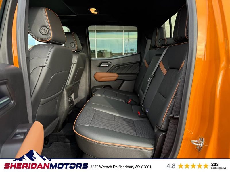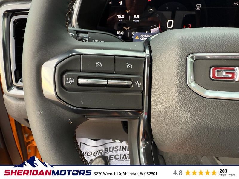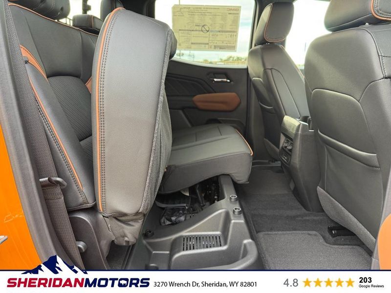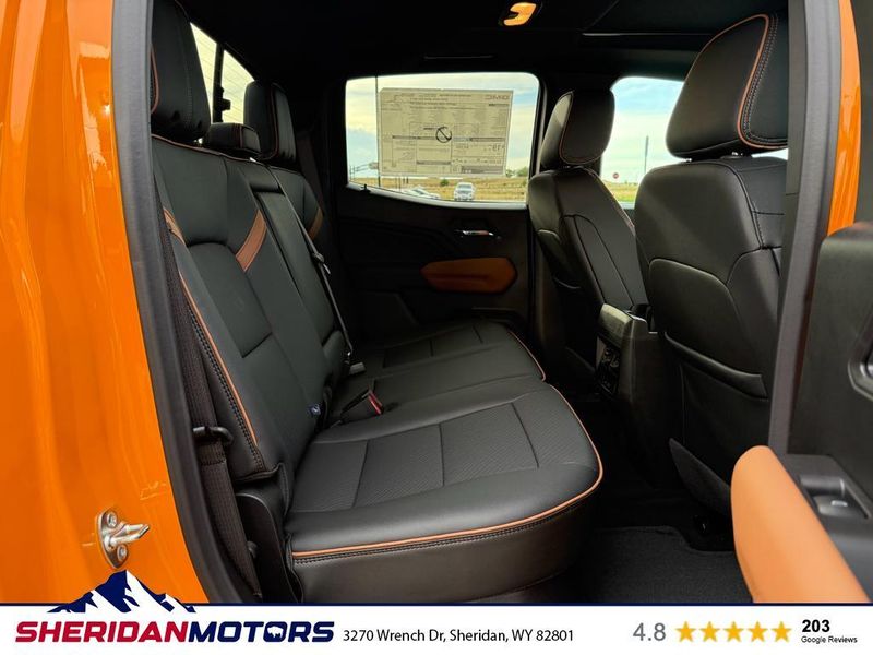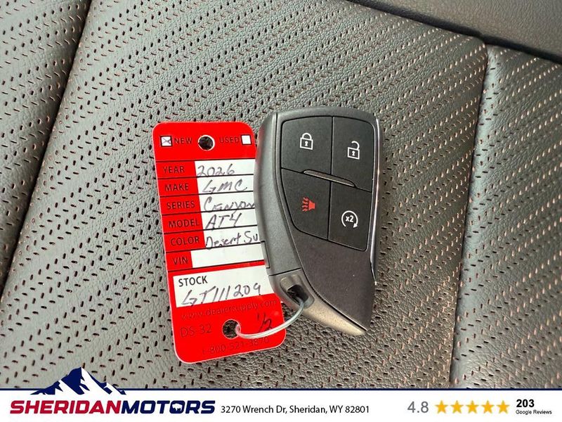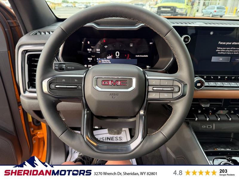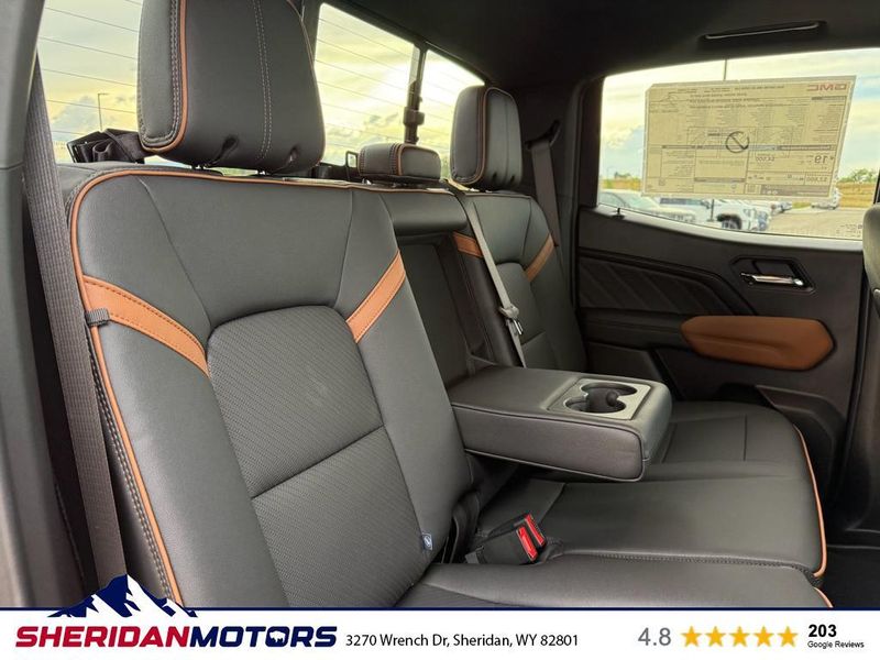 AT4 Premium Package: Driver Memory; 6-Way Power Passenger Seat Adjuster; Wireless Phone Charging; Heated Steering Wheel; Perforated Leather-Appointed Seat Trim; Power Passenger Lumbar Control Seat Adjuster; Rear Center Fold-Down Armrest with 2 Cupholders; Driver Seatback Map Pocket; Driver and Front Passenger Ventilated Seats. Technology Plus Package: HD Surround Vision; Laminated Windshield Acoustic Glass; Rear Pedestrian Alert; Power Inner Sliding Glass Sunroof with Manual Shade; Premium 7-Speaker Bose Sound System; Multicolor 6.3" Diagonal Head-Up Display; Adaptive Cruise Control. Preferred Equipment Group 4SG: Interior Overhead Courtesy Light with Dual Reading Lamp; 120-Volt Bed Mounted Power Outlet; EZ-Lift and Lower Tailgate; Canyon Pro Safety; Remote Vehicle Starter System; 8-Way Power Driver Seat Adjuster; Driver and Front Passenger Illuminated Visors; Dual-Zone Automatic Climate Control Air Conditioning; Power Driver Lumbar Control Seat Adjuster; Front LED Fog Lamps; Tailgate Keyed Cylinder Lock; Til and Telescopic Manual Steering Column; MultiStow Tailgate Storage Compartment; Inside Rearview Auto-Dimming Mirror; Rear of Console 120-Volt Power Outlet; Canyon Safety Plus Package; Heated Driver and Front Passenger Seats; 2 Rear USB Ports in Center Console (charge-Only). Desert Sun. Spray-On Bedliner with GMC Logo. 3 Years SiriusXM. Front License Plate Kit. **Equipment listed is based on original vehicle build and subject to change. Please confirm the accuracy of the included equipment by calling the dealer prior to purchase.**