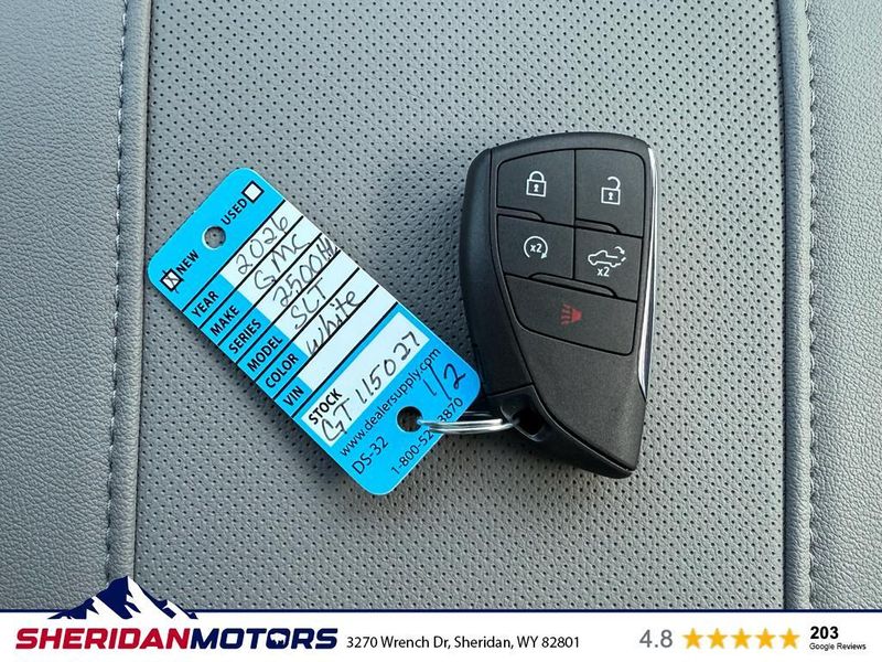 2026 GMC Sierra 2500 SLT 4WD ? Powerful V8, Best Price in Sheridan WY Looking for a heavy-duty pickup that combines capability, comfort, and cutting-edge tech? This 2026 GMC Sierra 2500 SLT with a 6.6L V8 gasoline engine and 4WD delivers the torque and towing confidence you need for work or weekend adventures. Located in Sheridan WY, this GMC Sierra 2500 SLT is competitively priced and marked as the best price in the area ? great value for a like-new, feature-packed truck. Comfort and convenience features include a heated steering wheel for cold Wyoming mornings, remote start for quick cabin warming, and adaptive cruise control for safer highway driving. Stay connected with Apple CarPlay and XM Radio for entertainment and seamless smartphone integration on every trip. Built for performance, the 6.6L V8 provides robust horsepower and towing capacity, while the 4WD system ensures confident traction in snow, mud, and rough terrain. The SLT trim adds premium appointments and practical touches that make this GMC Sierra a versatile choice for both daily driving and heavy-duty tasks. Schedule a test drive in Sheridan WY today and see why this 2026 GMC Sierra 2500 SLT is the smart choice. Best price guaranteed ? drive home a powerful, tech-forward pickup built to handle the toughest jobs.