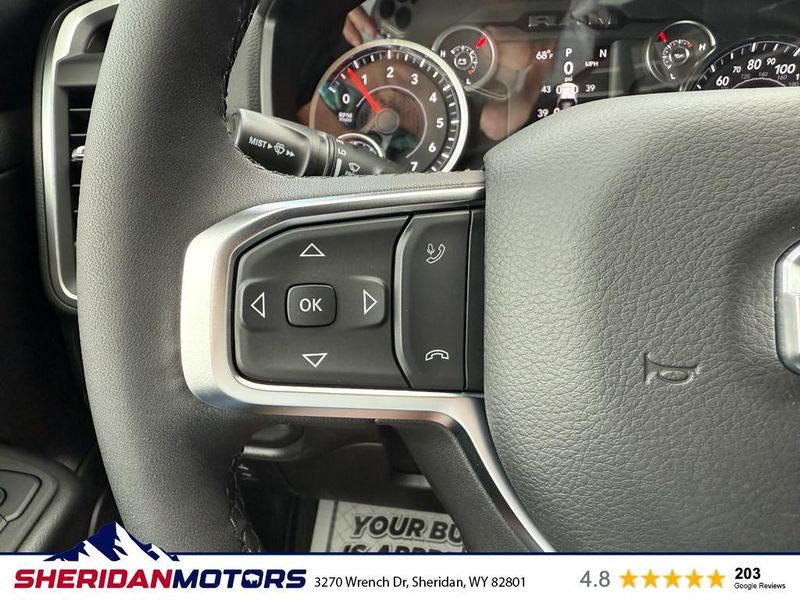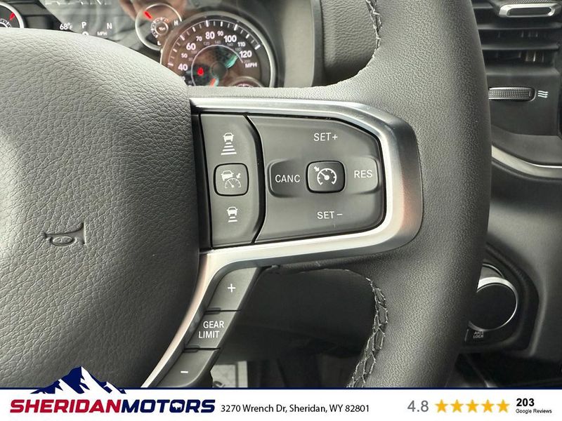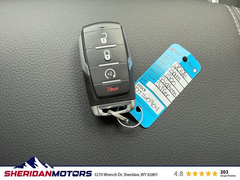 This vehicle is pure luxury with a heated steering wheel. The Ram 1500's Forward Collision Warning system alerts the driver to potential front-end collisions, enhancing safety. This unit has satellite radio capabilities. This 2026 Ram 1500 is equipped with the latest generation of XM/Sirius Radio. Protect this 2026 Ram 1500 from unwanted accidents with a cutting edge backup camera system. This vehicle features a hands-free Bluetooth phone system. Start this 2026 Ram 1500 from inside with remote start. The vehicle comes equipped with Android Auto for seamless smartphone integration on the road. The rear parking assist technology on the vehicle will put you at ease when reversing. The system alerts you as you get closer to an obstruction. It has auto-adjust speed for safe following. Apple CarPlay: Seamless smartphone integration for this vehicle - stay connected and entertained on the go! An off-road package is equipped on the vehicle. The Ram 1500 shines with an exquisite metallic silver exterior finish.