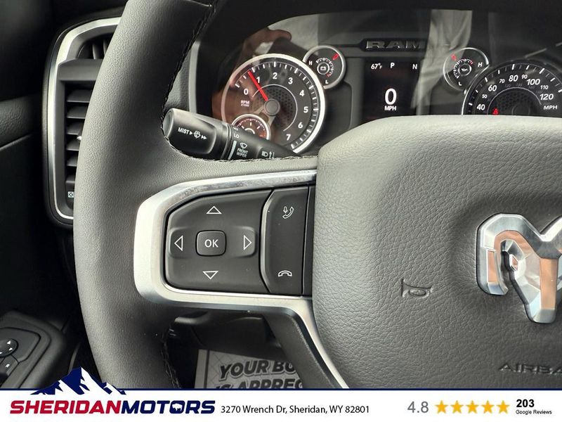 The rear parking assist technology on this model will put you at ease when reversing. The system alerts you as you get closer to an obstruction. The vehicle features a hands-free Bluetooth phone system. Start the vehicle from inside with remote start. The satellite radio system in this unit gives you access to hundreds of nation-wide radio stations with a clear digital signal. Protect this 2026 Ram 1500 from unwanted accidents with a cutting edge backup camera system. This 2026 Ram 1500 is equipped with the latest generation of XM/Sirius Radio. This 1/2 ton pickup offers Android Auto for seamless smartphone integration. This 2026 Ram 1500 's Forward Collision Warning system alerts the driver to potential front-end collisions, enhancing safety. Apple CarPlay: Seamless smartphone integration for this 1/2 ton pickup - stay connected and entertained on the go! This 1/2 ton pickup has automated speed control that adjusts to maintain a safe following distance, enhancing highway driving convenience.