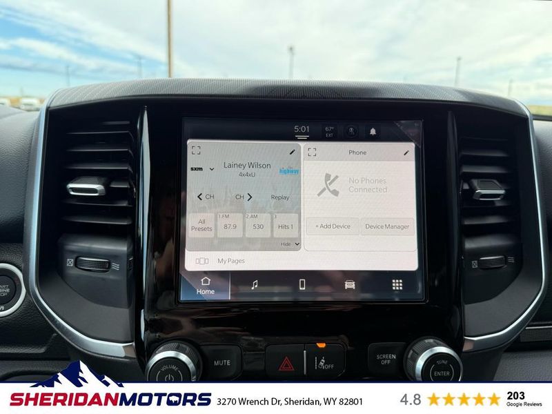 Step into the future of driving with the 2026 Ram 1500 Big Horn, a masterpiece of engineering and comfort, designed to elevate every journey. This powerhouse boasts a robust 6-cylinder, 3.0L engine paired with a highly capable 4WD system, ensuring you can tackle any terrain with confidence and ease. Whether you're navigating city streets or exploring off-the-beaten paths, this truck delivers exceptional performance and reliability. Inside, the Ram 1500 Big Horn offers a cabin that seamlessly blends functionality and luxury. Stay connected with the latest technology, featuring Android Auto and Apple CarPlay for effortless smartphone integration, while XM Radio keeps your soundtrack fresh and diverse. The Hands Free Bluetooth connectivity ensures you can make calls safely and conveniently, keeping your focus on the road. Experience ultimate comfort with the heated steering wheel, perfect for those chilly mornings or late-night adventures. The interior is thoughtfully designed with premium materials and intuitive controls, providing a spacious and inviting atmosphere for both driver and passengers alike. This Ram 1500 Big Horn isn't just a truck; it's a statement of strength and sophistication. Whether for work or play, it combines rugged capability with modern amenities, making every drive an unforgettable experience. Don't miss the chance to own this exceptional vehicle that redefines what a truck can be.