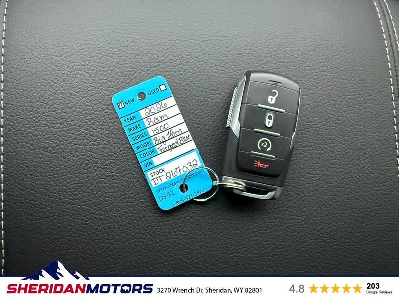 2026 Ram 1500 Big Horn 4WD with the powerful 5.7L V8 gasoline engine ? located in Sheridan, WY and priced to sell. This rugged full-size pickup delivers exceptional towing capacity, confident off-road capability, and the refined comfort Ram is known for. Ideal for Wyoming roads and mountain trails, the 4-wheel drive system and robust V8 power make it ready for work or weekend adventure. Inside, enjoy modern convenience with Satellite Radio for entertainment on long drives, Hands Free Bluetooth for safe phone and audio control, and Remote Start to warm up or cool down the cabin before you get in. A Heated Steering Wheel adds comfort during cold Sheridan winters, while Rear Parking Sensors help with tight parking situations and trailering maneuvers. This 2026 Ram 1500 Big Horn combines capability and technology at the best price in Sheridan, WY ? a smart buy for drivers seeking value without compromising performance. Whether you need daily driving comfort, serious towing, or dependable 4WD for seasonal conditions, this truck checks the boxes. Schedule a test drive today to experience the engine, handling, and features firsthand and see why this Ram 1500 Big Horn stands out as the top-priced value in the area.