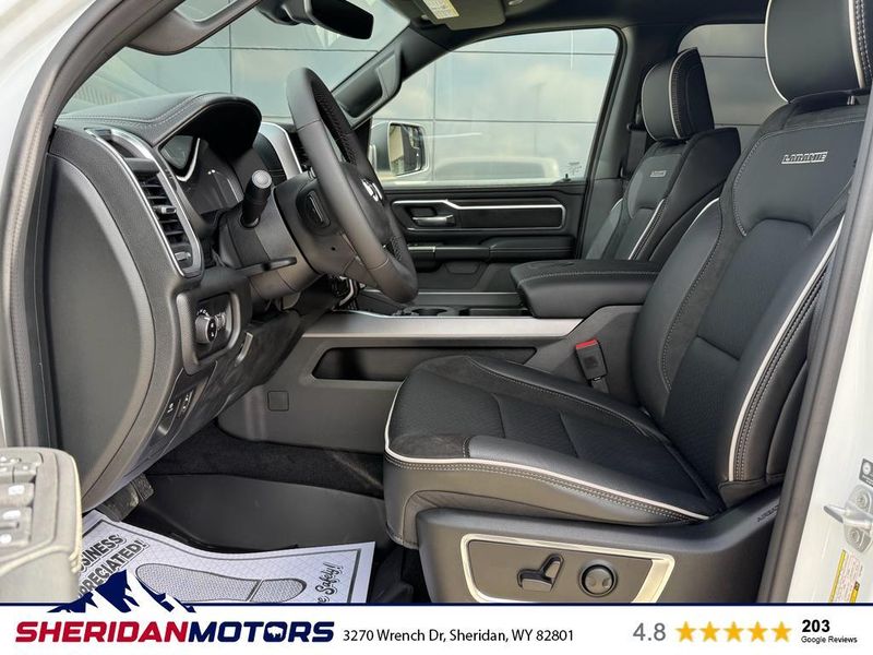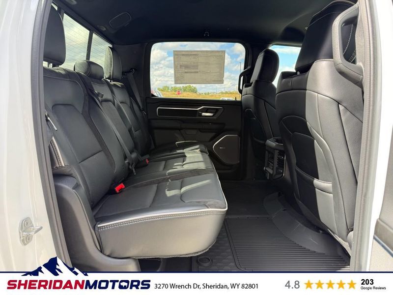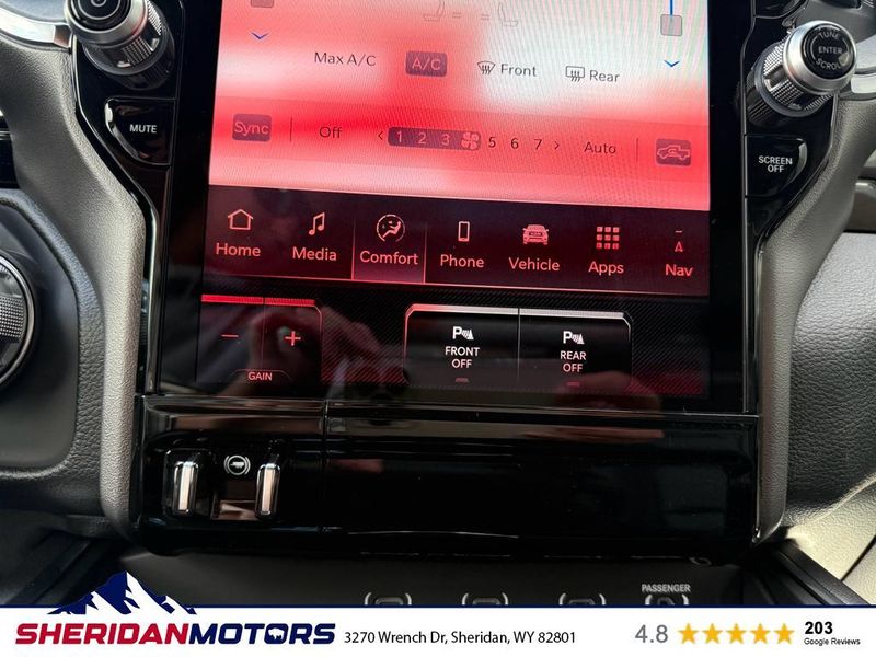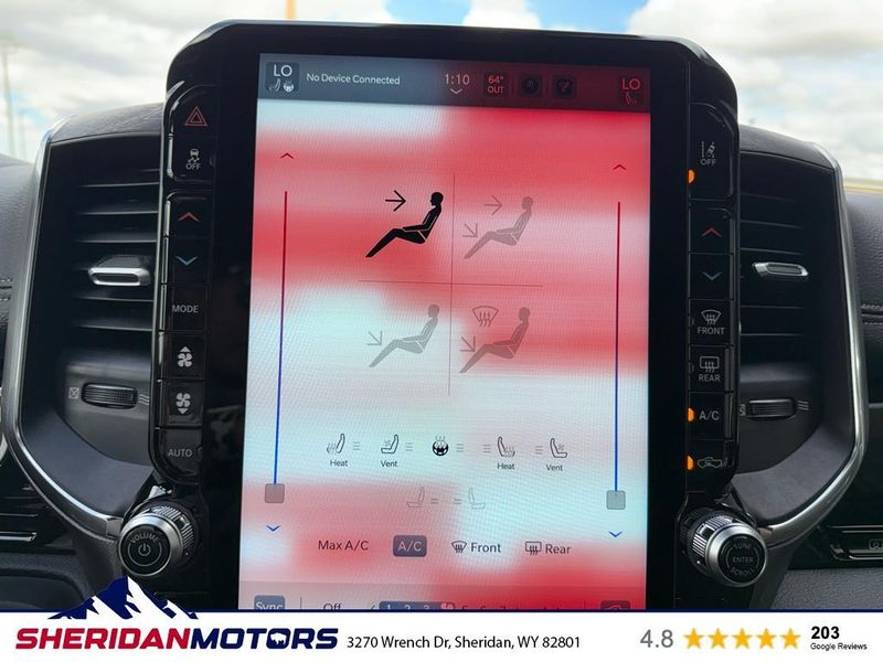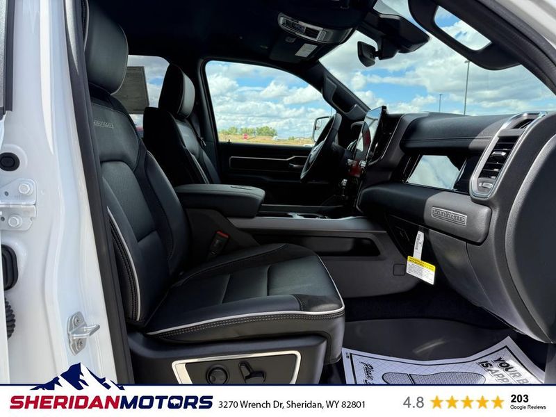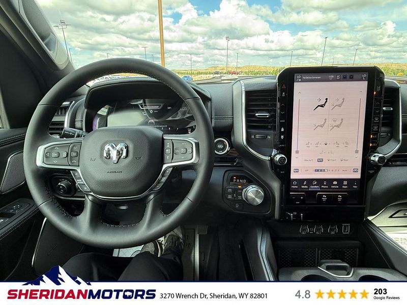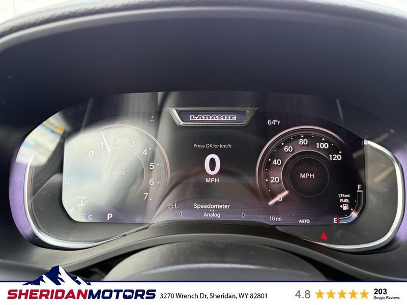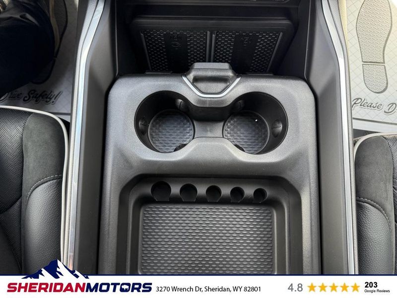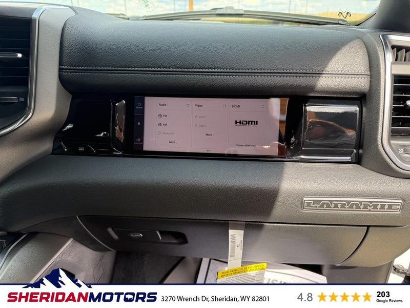 Laramie Level 2 Equipment Group: Google Android Auto; SiriusXM Radio Service; USB Host Flip; Rain Sensitive Windshield Wipers; Integrated Center Stack Radio; Front Passenger Interactive Display; Integrated Voice Command with Bluetooth; Connectivity - US/Canada; GPS Navigation; 4G LTE Wi-Fi Hot Spot; GPS Antenna Input; SiriusXM with 360L; Global Telematics Box Module; Connected Travel and Traffic Services; Apple CarPlay; Off-Road Information Pages; Disassociated Touchscreen Display; Secondary Active Grille Shutters; HD Radio; Smartphone as a Key Capable; 14.4" Touchscreen Display; Dual Wireless Charging Pad; Uconnect 5 Nav with 14.4" Display; Harman/kardon 19 Speaker Premium Sound; Cluster 12" TFT Color Display; Power Tailgate; Google Android Auto; SiriusXM Radio Service; USB Host Flip; Rain Sensitive Windshield Wipers; Integrated Center Stack Radio; Front Passenger Interactive Display; Integrated Voice Command with Bluetooth; Connectivity - US/Canada; GPS Navigation; 4G LTE Wi-Fi Hot Spot; GPS Antenna Input; SiriusXM with 360L; Global Telematics Box Module; Connected Travel and Traffic Services; Apple CarPlay; Disassociated Touchscreen Display; Secondary Active Grille Shutters; HD Radio; Smartphone as a Key Capable; 14.4" Touchscreen Display; Dual Wireless Charging Pad; Uconnect 5 Nav with 14.4" Display; Harman/kardon 19 Speaker Premium Sound; Cluster 12" TFT Color Display; Power Tailgate. Quick Order Package 21H Laramie. Off Road Group: Off Road Decals; Steering Gear Skid Plate; Falken Brand Tires; Raised Ride Height; 285/45R22XL BSW All Terrain Tires; Front Extra Heavy Duty Shock Absorbers; 20" Full Size Aluminum Spare Wheel; Rear Extra Heavy Duty Shock Absorbers; Full Size Spare Tire; Tow Hooks; E-Locker Rear Axle; Transfer Case Skid Plate; Fuel Tank Skid Plate; Selec-Speed Control; Off Road Decals; Steering Gear Skid Plate; Falken Brand Tires; 275/55R20 BSW All-Terrain Tires; Raised Ride Height; Front Extra Heavy Duty Shock Absorbers; Rear Extra Heavy Duty Shock Absorbers; Full Size Spare Tire; Tow Hooks; E-Locker Rear Axle; Transfer Case Skid Plate; Fuel Tank Skid Plate; Selec-Speed Control. E-Locker Rear Axle. 33 Gallon Fuel Tank. Trailer Brake Control. MOPAR Front and Rear Rubber Floor Mats. **Equipment listed is based on original vehicle build and subject to change. Please confirm the accuracy of the included equipment by calling the dealer prior to purchase.**