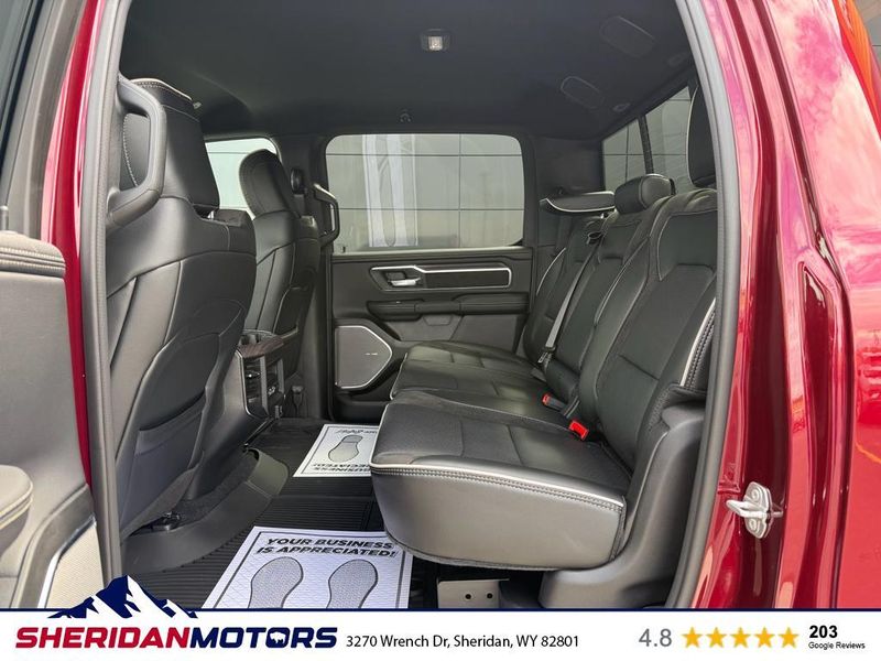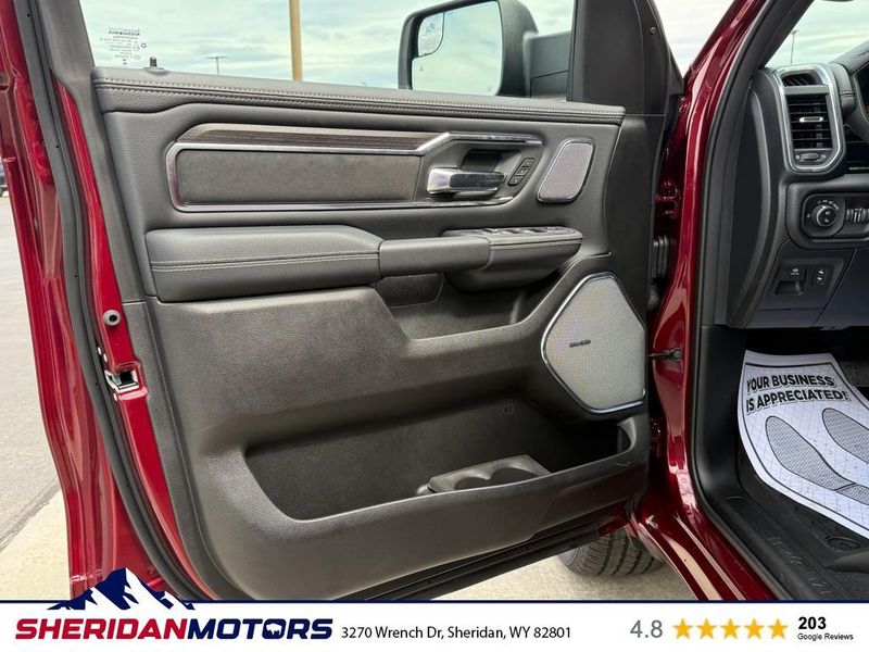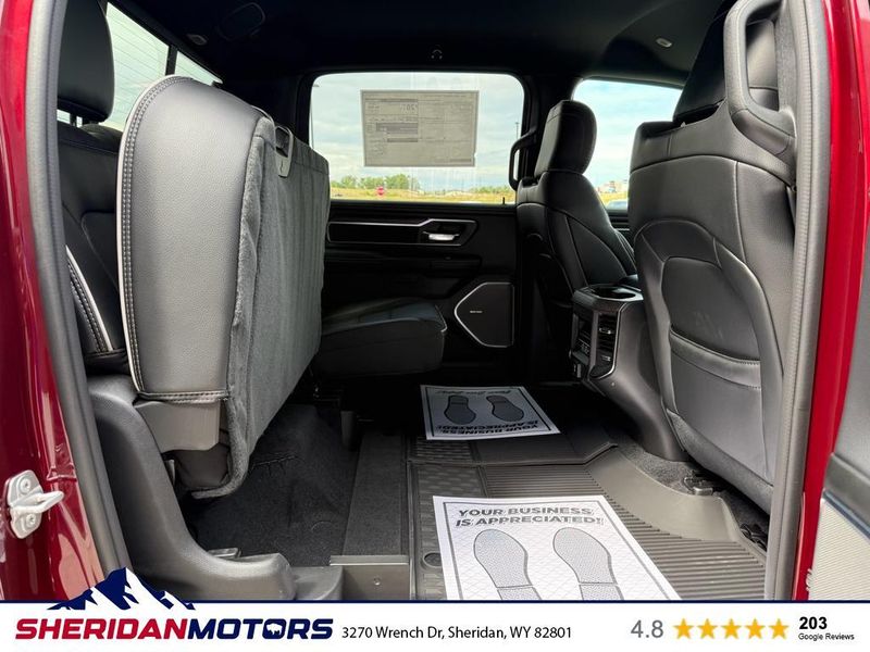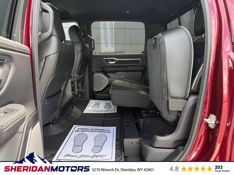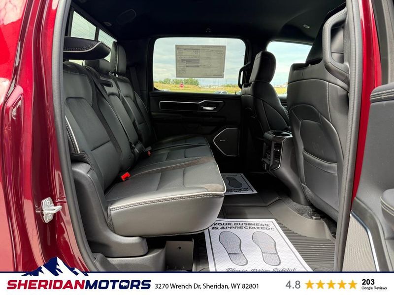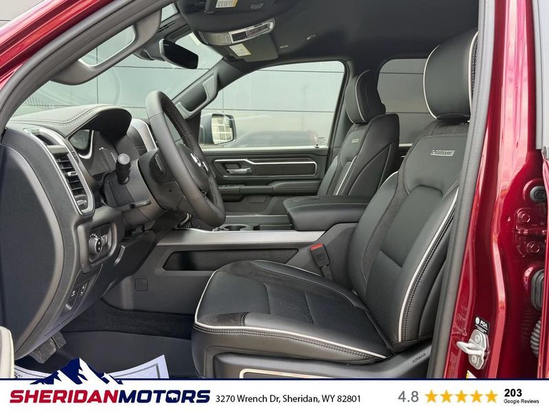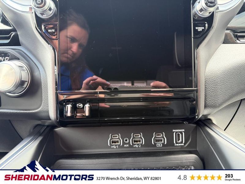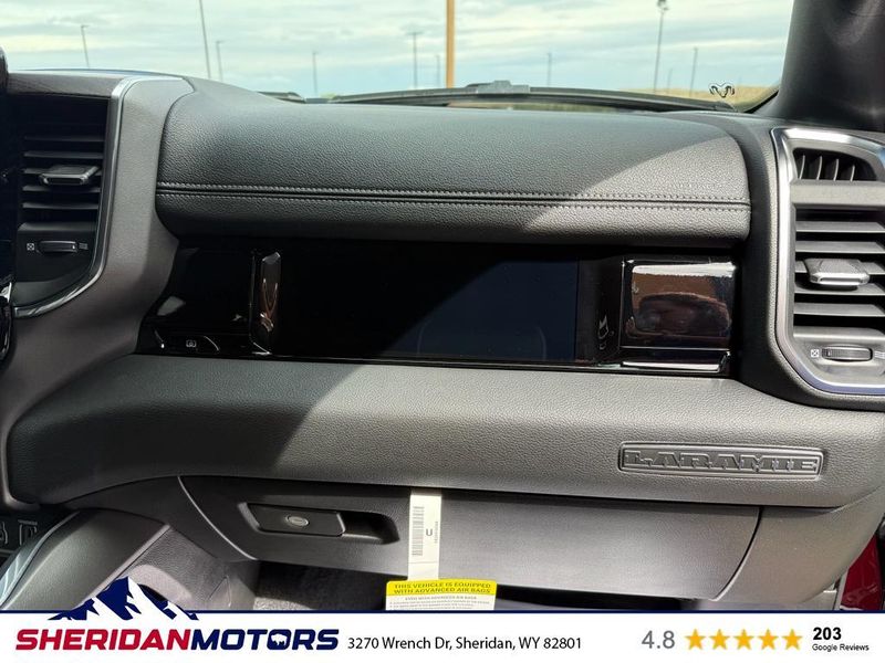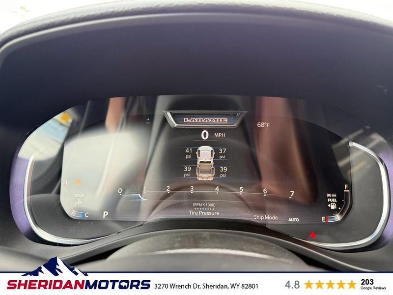 Laramie Level 2 Equipment Group: Google Android Auto; SiriusXM Radio Service; USB Host Flip; Rain Sensitive Windshield Wipers; Integrated Center Stack Radio; Front Passenger Interactive Display; Integrated Voice Command with Bluetooth; Connectivity - US/Canada; GPS Navigation; 4G LTE Wi-Fi Hot Spot; GPS Antenna Input; SiriusXM with 360L; Global Telematics Box Module; Connected Travel and Traffic Services; Apple CarPlay; Off-Road Information Pages; Disassociated Touchscreen Display; Secondary Active Grille Shutters; HD Radio; Smartphone as a Key Capable; 14.4" Touchscreen Display; Dual Wireless Charging Pad; Uconnect 5 Nav with 14.4" Display; Harman/kardon 19 Speaker Premium Sound; Cluster 12" TFT Color Display; Power Tailgate; Google Android Auto; SiriusXM Radio Service; USB Host Flip; Rain Sensitive Windshield Wipers; Integrated Center Stack Radio; Front Passenger Interactive Display; Integrated Voice Command with Bluetooth; Connectivity - US/Canada; GPS Navigation; 4G LTE Wi-Fi Hot Spot; GPS Antenna Input; SiriusXM with 360L; Global Telematics Box Module; Connected Travel and Traffic Services; Apple CarPlay; Disassociated Touchscreen Display; Secondary Active Grille Shutters; HD Radio; Smartphone as a Key Capable; 14.4" Touchscreen Display; Dual Wireless Charging Pad; Uconnect 5 Nav with 14.4" Display; Harman/kardon 19 Speaker Premium Sound; Cluster 12" TFT Color Display; Power Tailgate. Quick Order Package 21H Laramie. Off Road Group: Off Road Decals; Steering Gear Skid Plate; Falken Brand Tires; Raised Ride Height; 285/45R22XL BSW All Terrain Tires; Front Extra Heavy Duty Shock Absorbers; 20" Full Size Aluminum Spare Wheel; Rear Extra Heavy Duty Shock Absorbers; Full Size Spare Tire; Tow Hooks; E-Locker Rear Axle; Transfer Case Skid Plate; Fuel Tank Skid Plate; Selec-Speed Control; Off Road Decals; Steering Gear Skid Plate; Falken Brand Tires; 275/55R20 BSW All-Terrain Tires; Raised Ride Height; Front Extra Heavy Duty Shock Absorbers; Rear Extra Heavy Duty Shock Absorbers; Full Size Spare Tire; Tow Hooks; E-Locker Rear Axle; Transfer Case Skid Plate; Fuel Tank Skid Plate; Selec-Speed Control. E-Locker Rear Axle. 33 Gallon Fuel Tank. Trailer Brake Control. Delmonico Red Pearlcoat. MOPAR Front and Rear Rubber Floor Mats. **Equipment listed is based on original vehicle build and subject to change. Please confirm the accuracy of the included equipment by calling the dealer prior to purchase.**