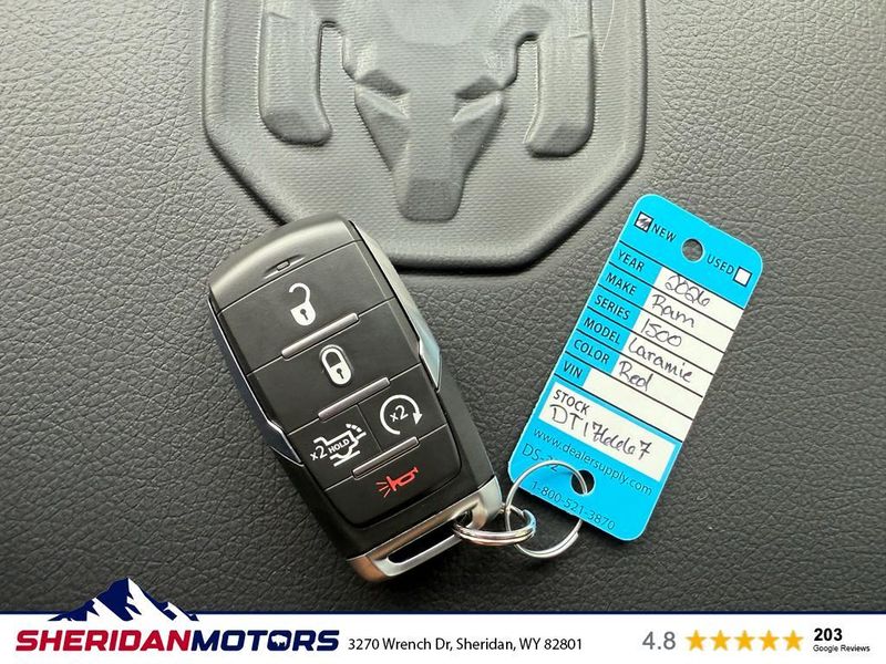 Introducing the 2026 Ram 1500 Laramie, a remarkable blend of power, luxury, and advanced technology. Designed to meet the demands of both rugged terrains and urban landscapes, this 4WD powerhouse is equipped with a robust 6-cylinder, 3.0L engine, ensuring a smooth yet commanding drive. Inside, the Ram 1500 Laramie offers a sanctuary of comfort and connectivity. The Premium Sound System delivers an immersive audio experience, perfectly complementing the available XM Radio and seamless integration with Android Auto. Whether you're navigating through city streets or exploring off-road paths, the heated steering wheel ensures your comfort in varying climates. Convenience is at your fingertips with the Remote Start feature, allowing you to prepare your vehicle for any journey without stepping outside. The Ram 1500 Laramie's sophisticated design is matched by its practicality, providing ample space and intelligent storage solutions for all your needs. This vehicle is not just about performance; it represents a commitment to superior craftsmanship and innovative features. The 2026 Ram 1500 Laramie stands as a testament to modern engineering, promising reliability and luxury with every mile. Discover the pinnacle of driving excellence with this exceptional pickup truck, designed to elevate your driving experience to new heights.