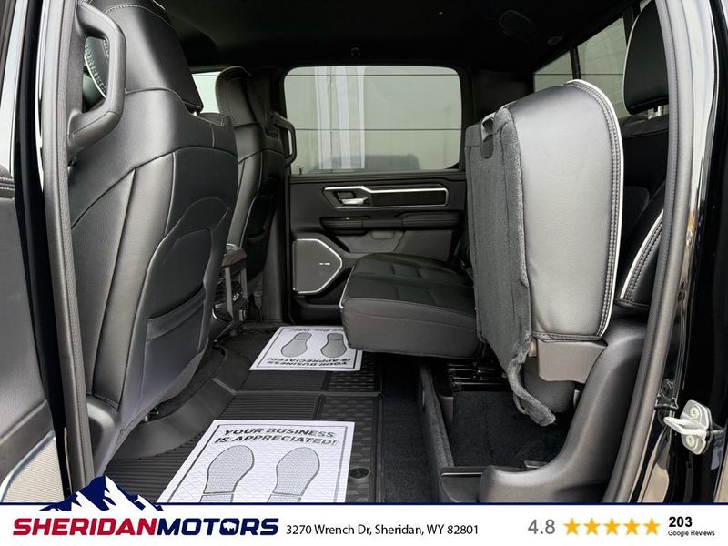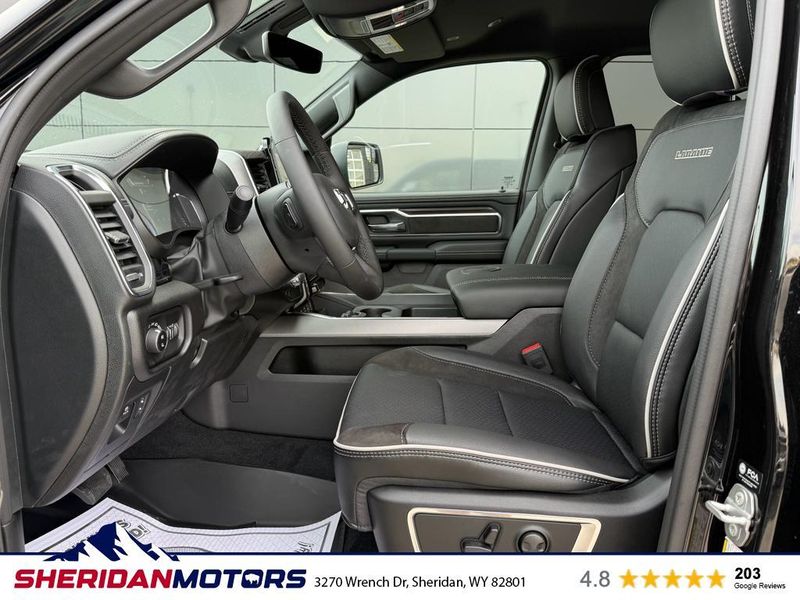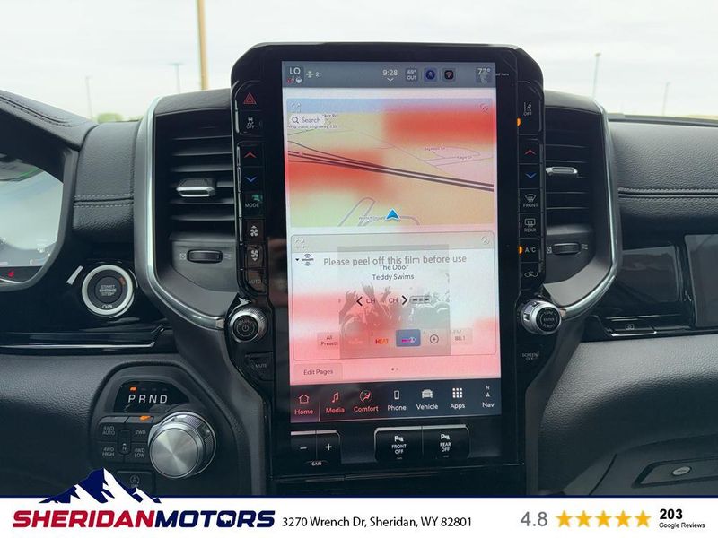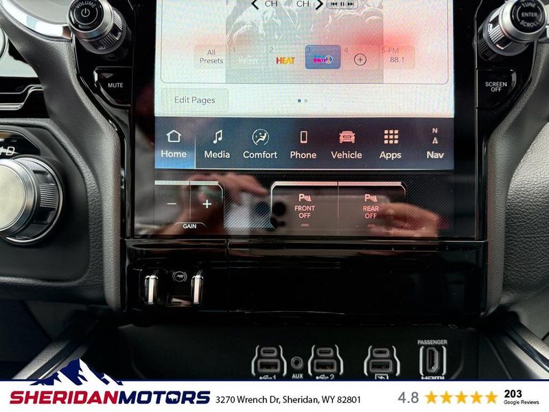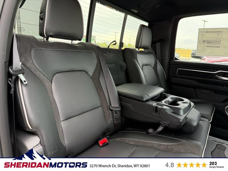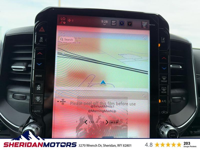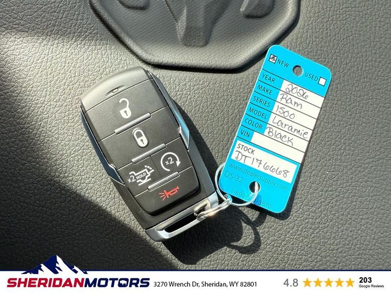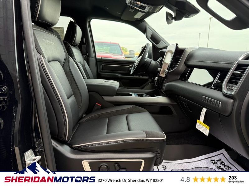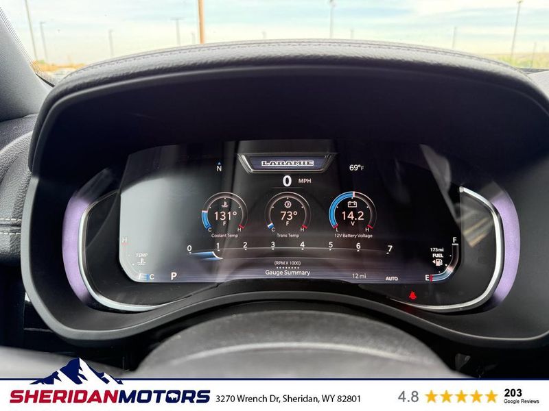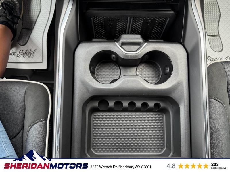 Laramie Level 2 Equipment Group: Google Android Auto; SiriusXM Radio Service; USB Host Flip; Rain Sensitive Windshield Wipers; Integrated Center Stack Radio; Front Passenger Interactive Display; Integrated Voice Command with Bluetooth; Connectivity - US/Canada; GPS Navigation; 4G LTE Wi-Fi Hot Spot; GPS Antenna Input; SiriusXM with 360L; Global Telematics Box Module; Connected Travel and Traffic Services; Apple CarPlay; Off-Road Information Pages; Disassociated Touchscreen Display; Secondary Active Grille Shutters; HD Radio; Smartphone as a Key Capable; 14.4" Touchscreen Display; Dual Wireless Charging Pad; Uconnect 5 Nav with 14.4" Display; Harman/kardon 19 Speaker Premium Sound; Cluster 12" TFT Color Display; Power Tailgate; Google Android Auto; SiriusXM Radio Service; USB Host Flip; Rain Sensitive Windshield Wipers; Integrated Center Stack Radio; Front Passenger Interactive Display; Integrated Voice Command with Bluetooth; Connectivity - US/Canada; GPS Navigation; 4G LTE Wi-Fi Hot Spot; GPS Antenna Input; SiriusXM with 360L; Global Telematics Box Module; Connected Travel and Traffic Services; Apple CarPlay; Disassociated Touchscreen Display; Secondary Active Grille Shutters; HD Radio; Smartphone as a Key Capable; 14.4" Touchscreen Display; Dual Wireless Charging Pad; Uconnect 5 Nav with 14.4" Display; Harman/kardon 19 Speaker Premium Sound; Cluster 12" TFT Color Display; Power Tailgate. Quick Order Package 21H Laramie. Off Road Group: Off Road Decals; Steering Gear Skid Plate; Falken Brand Tires; Raised Ride Height; 285/45R22XL BSW All Terrain Tires; Front Extra Heavy Duty Shock Absorbers; 20" Full Size Aluminum Spare Wheel; Rear Extra Heavy Duty Shock Absorbers; Full Size Spare Tire; Tow Hooks; E-Locker Rear Axle; Transfer Case Skid Plate; Fuel Tank Skid Plate; Selec-Speed Control; Off Road Decals; Steering Gear Skid Plate; Falken Brand Tires; 275/55R20 BSW All-Terrain Tires; Raised Ride Height; Front Extra Heavy Duty Shock Absorbers; Rear Extra Heavy Duty Shock Absorbers; Full Size Spare Tire; Tow Hooks; E-Locker Rear Axle; Transfer Case Skid Plate; Fuel Tank Skid Plate; Selec-Speed Control. E-Locker Rear Axle. 33 Gallon Fuel Tank. Trailer Brake Control. Diamond Black Crystal PC. MOPAR Front and Rear Rubber Floor Mats. **Equipment listed is based on original vehicle build and subject to change. Please confirm the accuracy of the included equipment by calling the dealer prior to purchase.**