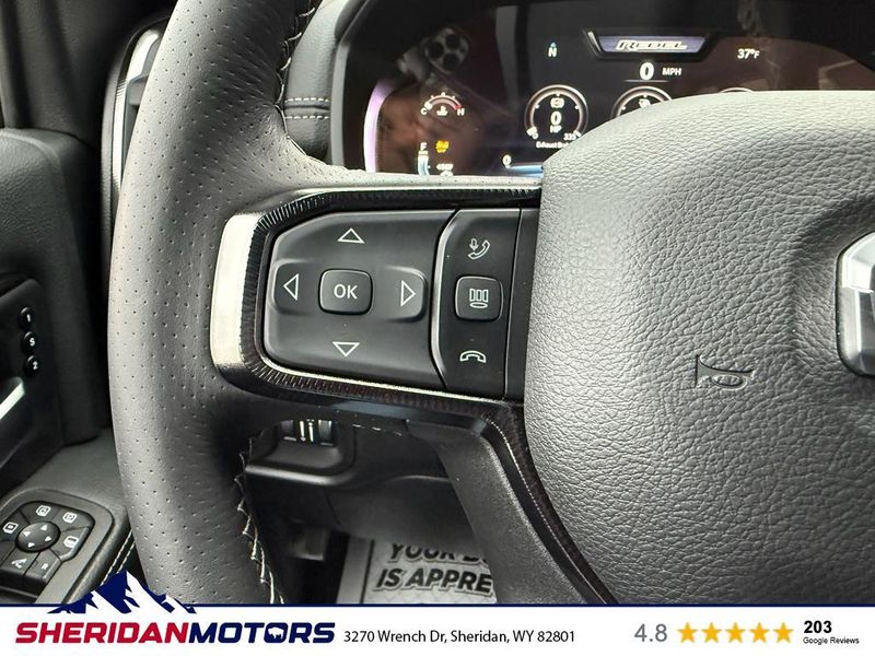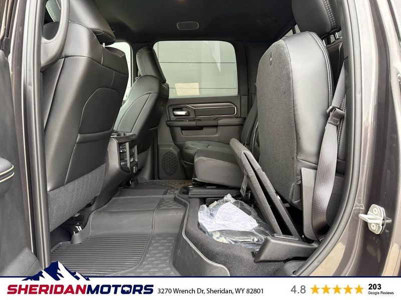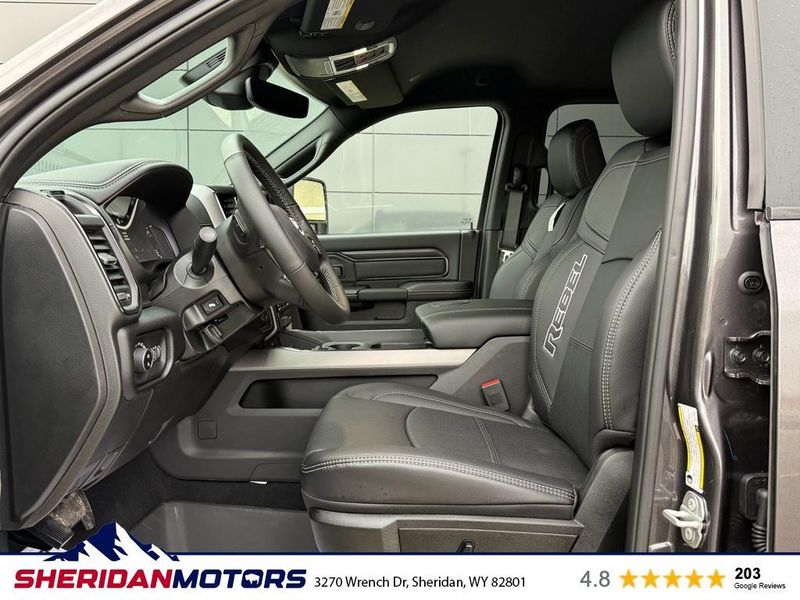 Cold Weather Group: Engine Block Heater; MOPAR Winter Front Grille Cover. Bed Convenience Group: MOPAR Spray in Bedliner; LED Bed Lighting. Quick Order Package 24R Rebel. Rebel Level 1 Equipment Group: Rain Sensitive Windshield Wipers; Power Adjustable Pedals with Memory; Body Color Door Handles; Auto Power-Folding Mirrors; Overhead LED Lamps; Exterior Mirrors with Heating Element; Auto Dim Exterior Mirror; MOPAR Rock Rails with Step Pad; Mirror Running Lights; Black Exterior Mirrors; Power-Adjustable Convex Aux Mirrors; Premium Overhead Console; Forward and Reverse Utility Lights; 9 Alpine Speakers with Subwoofer; Power Heated Fold Telescopic Mirrors with Memory; Exterior Mirrors with Supplemental Signals; Sport Performance Hood; Exterior Mirrors Courtesy Lamps; Front Door Locks 2-Door Passive Entry; LED Interior Lighting; Auto High Beam Headlamp Control; LED Dome Lamp with On/off Switch; Universal Garage Door Opener; Exterior Mirrors with Memory; Power Adjust Mirrors; Power Telescoping Mirrors; Leather Trimmed Bucket Seats; MOPAR Front and Rear Rubber Floor Mats; Auto Dim Exterior Passenger Mirror; Sun Visors with Illuminated Vanity Mirrors; Auto Adjust in Reverse Exterior Mirrors. MOPAR Rock Rails with Step Pad. Sport Performance Hood. 5th Wheel/gooseneck Towing Prep Group. Center Stop Lamp with Cargo View Camera. MyFlexCare Service Diesel. Granite Crystal Met CC. Granite Crystal Met CC. Instrument Panel Mounted Auxiliary Switches. MOPAR Front and Rear Rubber Floor Mats. **Equipment listed is based on original vehicle build and subject to change. Please confirm the accuracy of the included equipment by calling the dealer prior to purchase.**