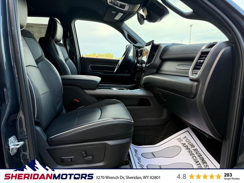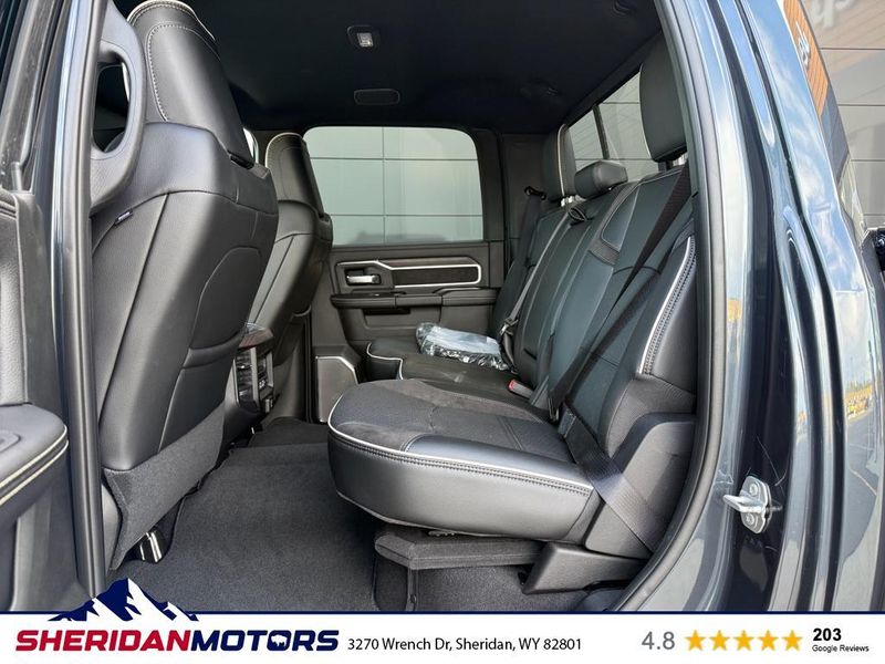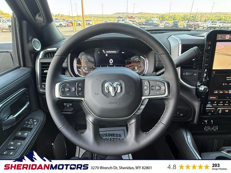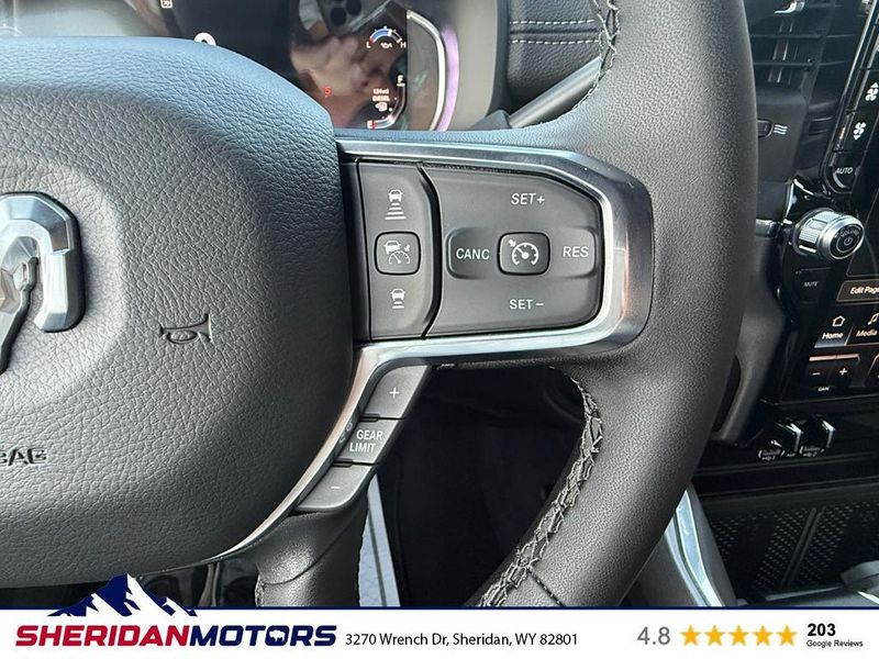 Never get into a cold vehicle again with the remote start feature on this unit. The leather seats in the vehicle are a must for buyers looking for comfort, durability, and style. This 3/4 ton pickup features a hands-free Bluetooth phone system. The vehicle has automated speed control that adjusts to maintain a safe following distance, enhancing highway driving convenience. This vehicle comes equipped with Android Auto for seamless smartphone integration on the road. This model offers Automatic Climate Control for personalized comfort. The installed navigation system will keep you on the right path. This Ram 2500's Forward Collision Warning feature alerts drivers to potential front-end collisions. Protect it from unwanted accidents with a cutting edge backup camera system. Keep your hands warm all winter with a heated steering wheel in this unit . The rear parking assist technology on the vehicle will put you at ease when reversing. The system alerts you as you get closer to an obstruction.