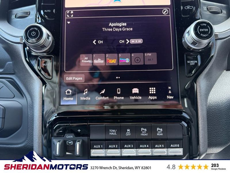 Apple CarPlay: Seamless smartphone integration for this vehicle - stay connected and entertained on the go! This model features a hands-free Bluetooth phone system. The installed navigation system will keep you on the right path. This 3/4 ton pickup keeps you comfortable with Auto Climate. This vehicle has auto-adjust speed for safe following. Protect this Ram 2500 from unwanted accidents with a cutting edge backup camera system. This Ram 2500 offers Android Auto for seamless smartphone integration. The rear parking assist technology on this vehicle will put you at ease when reversing. The system alerts you as you get closer to an obstruction. Maintaining a stable interior temperature in this vehicle is easy with the climate control system. A trailer braking system is already installed on this Ram 2500. It has four wheel drive capabilities. This Ram 2500 embodies class and sophistication with its refined white exterior. This unit has a V8, 6.4L high output engine.