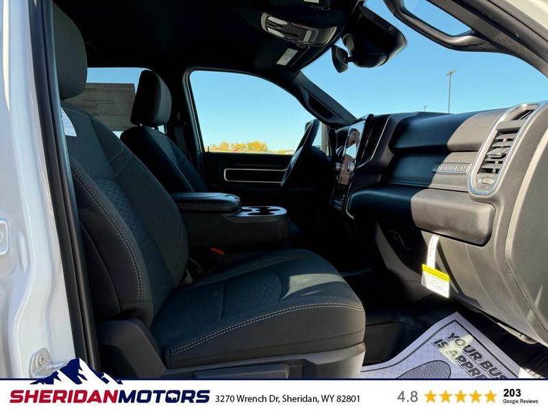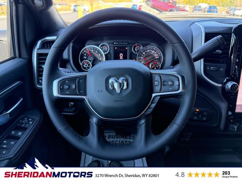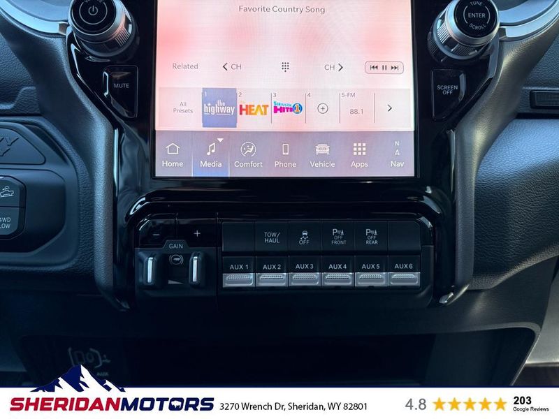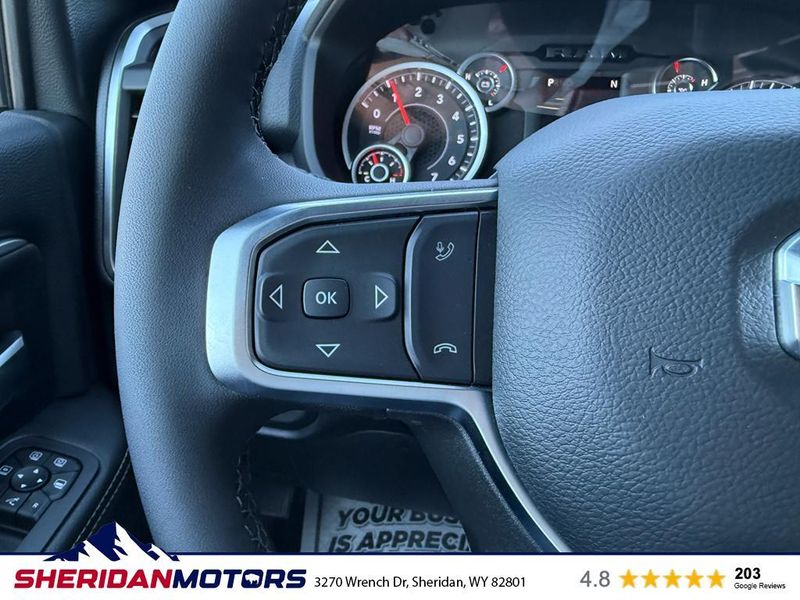 Quick Order Package 2UZ Big Horn. Big Horn Level 1 Plus Equipment Group: Google Android Auto; SiriusXM Radio Service; For Details. Visit DriveUconnect.com; For More Info. Call 800-643-2112; Integrated Voice Command with Bluetooth; Emergency Vehicle Alert System (EVAS); 12" Touchscreen Display; Premium Cloth 40/20/40 Bench Seat; Glove Box Lamp; Auto Power-Folding Mirrors; Footwell Courtesy Lamp; Anti-Spin Differential Rear Axle; Mirror Running Lights; MOPAR Deployable Bed Step; Alexa Built-In; Apple CarPlay; Power-Adjustable Convex Aux Mirrors; Forward and Reverse Utility Lights; Locking Lower Glove Box; Remote Start System; 9 Alpine Speakers with Subwoofer; Disassociated Touchscreen Display; Dual Glove Boxes; 2nd Row in Floor Storage Bins; Rear View Auto Dim Mirror; Rear Dome with On/off Switch Lamp; LED Bed Lighting; Connectivity - US/Canada; GPS Navigation; 4G LTE Wi-Fi Hot Spot; GPS Antenna Input; Exterior Mirrors with Heating Element; SiriusXM with 360L; Global Telematics Box Module; Connected Travel and Traffic Services; Foam Bottle Insert (door Trim Panel); Black Exterior Mirrors; Big Horn Instrument Panel Badge; Off-Road Info Pages; Selectable Tire Fill Alert; Trailer Tow Pages; HD Radio; Uconnect 5 Navigation with 12.0" Display Radio; Power Heated Folding Telescopic Mirrors; Exterior Mirrors with Supplemental Signals; Steering Wheel Mounted Audio Controls; Exterior Mirrors Courtesy Lamps; Air Conditioning ATC with Dual Zone Control; MOPAR Spray in Bedliner; Power Adjust Mirrors; Luxury Steering Wheel; Power Telescoping Mirrors. Off Road Package: LT275/70R18E OWL On/off Road Tires; Front Performance Tuned Shock Absorbers; Transfer Case Skid Plate Shield; Hill Descent Control; Rear Performance Tuned Shock Absorbers. Heated Seats and Wheel Group: Heated Front Seats; Heated Steering Wheel. Premium Cloth 40/20/40 Bench Seat. Anti-Spin Differential Rear Axle. LT275/70R18E OWL On/off Road Tires. Remote Start System. Instrument Panel Mounted Auxiliary Switches. MOPAR Front and Rear Rubber Floor Mats. MyFlexCare Service Plan. 4.10 Axle Ratio. Power 2-Way Driver Lumbar Adjust. Transfer Case Skid Plate Shield. **Equipment listed is based on original vehicle build and subject to change. Please confirm the accuracy of the included equipment by calling the dealer prior to purchase.**