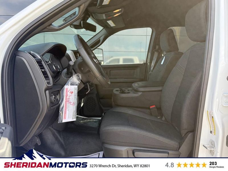 Cold Weather Group: Engine Block Heater; MOPAR Winter Front Grille Cover. Quick Order Package 25A Tradesman. Tradesman Level 1 Equipment Group: Exterior Mirrors with Heating Element; Trailer Brake Control; Rear Window Defroster; Black Power Heated Fold Telescope Mirrors; Mirror Running Lights; Exterior Mirrors with Supplemental Signals; Manuarl Telescoping Mirrors; Power Adjust Mirrors; Black Exterior Mirrors; Exterior Mirrors Courtesy Lamps; Manual Folding Exterior Mirrors; Power-Adjustable Convex Aux Mirrors. Dual Rear Wheels: Center Hub; 6000# Front Axle with Hub Extension; 17" X 6.0" Black Painted Steel Wheels; Nexen Brand Tires; 11.50" Dual Wheels Rear Axle; Black Wheel Center Hub. LT235/80R17E Off Road Tires. ParkView Rear Back-Up Camera. Trailer Brake Control. Full Size Spare Tire. MyFlexCare Service Diesel. Cloth 40/20/40 Bench Seat. **Equipment listed is based on original vehicle build and subject to change. Please confirm the accuracy of the included equipment by calling the dealer prior to purchase.**