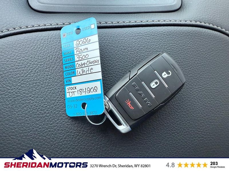Introducing the 2026 Ram 3500 Chassis Tradesman, a robust workhorse engineered to tackle the toughest jobs with ease and efficiency. Designed for those who demand exceptional performance, this model is equipped with a powerful 6.7L 6-cylinder engine, ensuring unparalleled strength and reliability. The dual rear wheels and advanced 4WD system provide superior traction and stability, making it the ideal choice for both rugged terrains and urban environments. Inside the cabin, the 2026 Ram 3500 Chassis Tradesman seamlessly combines functionality with modern technology. Stay connected on the go with integrated Apple CarPlay and Android Auto, providing seamless access to your favorite apps and media. The hands-free Bluetooth feature facilitates safe, convenient communication, allowing you to keep your focus on the road. Safety is paramount, and this vehicle is equipped with cutting-edge features such as Forward Collision Warning and Adaptive Cruise Control. These systems work in harmony to enhance your driving experience, offering peace of mind and added protection for you and your passengers. Whether you're hauling heavy loads or navigating challenging paths, the 2026 Ram 3500 Chassis Tradesman is engineered to exceed expectations, delivering unmatched durability and advanced technology for the modern driver.