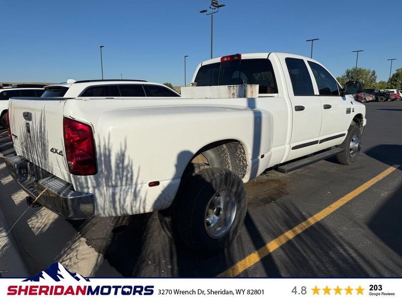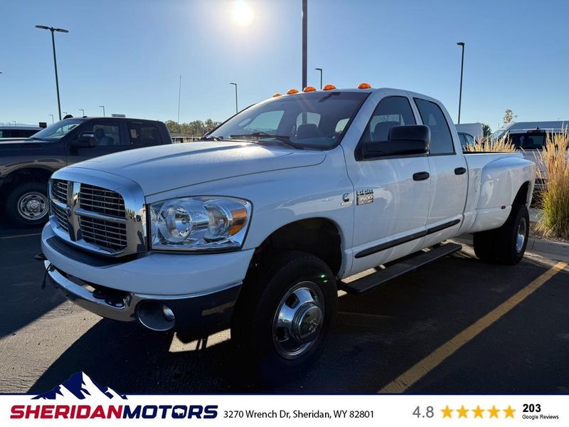 2007 Dodge Ram 3500 SLT 4WD Dually ? 6.7L Diesel, CARFAX 1-Owner, Sheridan WY For heavy-duty capability at the best price, this 2007 Dodge Ram Pickup 3500 SLT delivers power, reliability, and value. Equipped with a proven 6-cylinder, 6.7L diesel engine and 4WD with dual rear wheels, this dually is ready for towing, hauling, and tough Wyoming conditions. Whether you need a work truck for ranch duties or a confident hauler for long trips, this Ram offers the performance and durability you expect. Clean CARFAX history and CARFAX 1-Owner status provide added peace of mind ? this truck has been well cared for and maintained. Interior features include comfortable SLT trim and satellite radio for entertainment on the road. The heavy-duty suspension, robust drivetrain, and dual-rear-wheel stability make this model ideal for large trailers and heavy loads. Located in Sheridan, WY, this Dodge Ram 3500 SLT is priced to sell and represents the best price in the area for its condition and features. Contact us today to schedule a test drive or request the CARFAX report. Don?t miss a chance to own a dependable diesel dually that combines capability, proven history, and exceptional value.