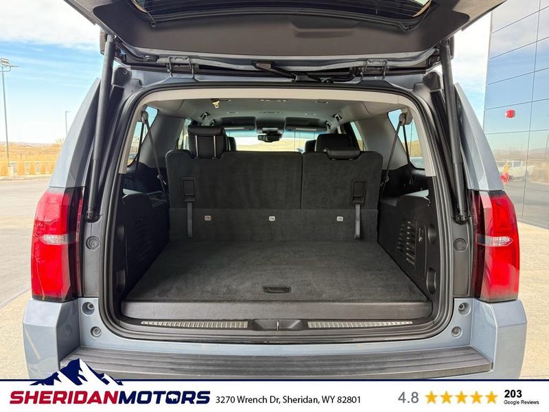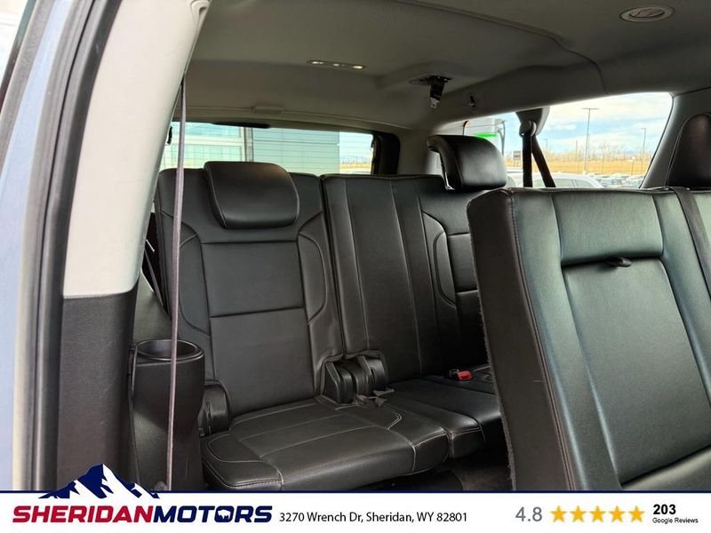 Max Trailering Package: 2-Speed Active Electronic Autotrac Transfer Case; Standard Suspension Package; 3.42 Rear Axle Ratio; Integrated Trailer Brake Controller. Preferred Equipment Group 1LT: Memory Settings; Leather-Appointed Seat Trim; Power Liftgate; Rear Park Assist with Audible Warning; Floor Console with Storage Area; 18" X 8.5" High-Polished Aluminum Finish Wheels; Enhanced Driver Instrument Information Display; Enhanced Driver Alert Package; Driver and Front Passenger Airbags; Universal Home Remote; Color-Keyed Carpeting Floor Covering; Extended-Range Remote Keyless Entry; 2nd Row 60/40 Split-Folding Manual Bench; Bose Premium Audio System Feature; 1st and 2nd Row Color-Keyed Carpeted Floor Mats; Heated Front Reclining Bucket Seats; Electronic Cruise Control with Set and Resume Speed; 5 12-Volt Auxiliary Power Outlets; SiriusXM Satellite Radio; OnStar Basic Plan For 5 Years; Single-Speed Active Autotrac Transfer Case; Black Assist Steps; Leather-Wrapped Steering Wheel; Roof-Mounted Luggage Rack Side Rails; Auto-Dimming Inside Rearview Mirror; Power-Adjustable Accelerator and Brake Pedals; 3rd Row Manual 60/40 Split-Folding Fold Flat Bench; P265/65R18 AS BW Tires; 4-Wheel Antilock Disc Brakes. Chevrolet MyLink AM/FM Stereo with Navigation. **Equipment listed is based on original vehicle build and subject to change. Please confirm the accuracy of the included equipment by calling the dealer prior to purchase.**