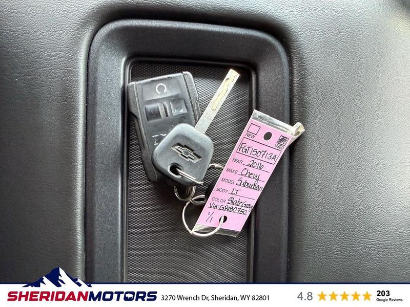 For sale in Sheridan, WY: a powerful and versatile 2016 Chevrolet Suburban 1500 LT 4WD with the trusted V8 5.3L gasoline engine?ready to tackle Wyoming roads, tow gear, and carry your whole crew in comfort. This Chevrolet Suburban blends rugged capability with upscale features, making it ideal for families, contractors, and outdoor enthusiasts who need space and performance without compromise. Inside, enjoy premium convenience and connectivity: Hands Free Bluetooth for safe calling, Apple CarPlay for seamless smartphone integration, Satellite Radio for endless listening options, and a BOSE stereo that delivers exceptional sound throughout the cabin. Advanced safety features include Lane Keep Assist to help reduce driver fatigue on long drives. With spacious seating, abundant cargo room, and durable materials, this Chevrolet Suburban is built for real-world use and long road trips. Mechanically sound and maintained to high standards, this 4WD Chevrolet Suburban delivers confidence in snow, gravel, and rough trails while offering strong towing capacity thanks to its V8 5.3L powerplant. Competitive pricing makes this unit the best value in the area?best price guaranteed for a well-equipped Chevrolet Suburban in Sheridan. If you're searching for a dependable, feature-rich SUV that combines capability, comfort, and tech, this 2016 Chevrolet Suburban 1500 LT 4WD is the ideal choice. Contact us to schedule a test drive and experience this exceptional SUV in Sheridan, WY.