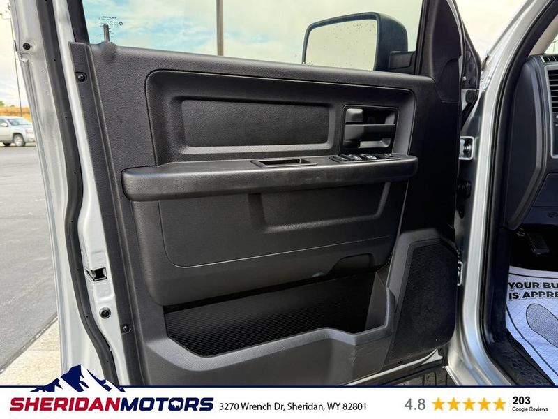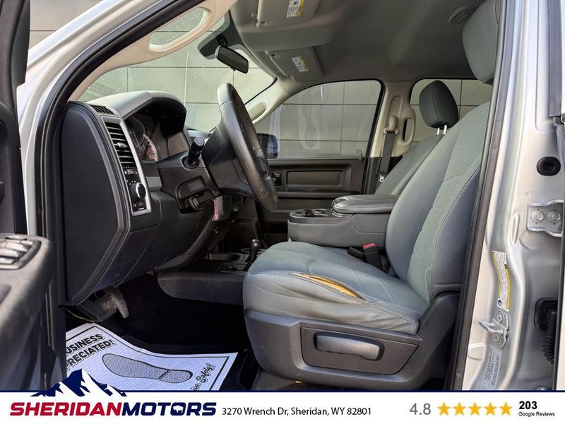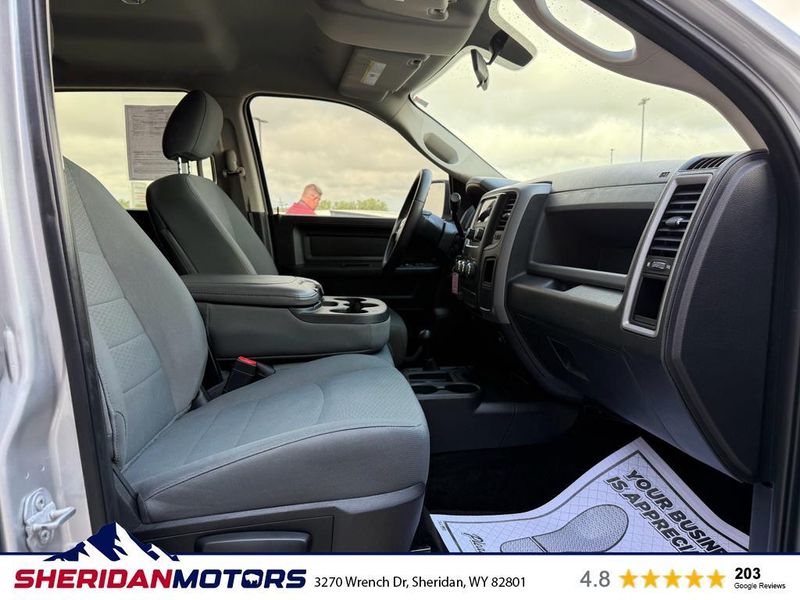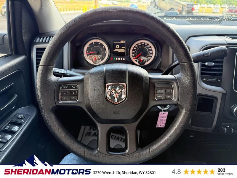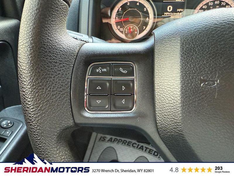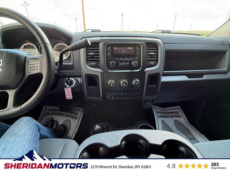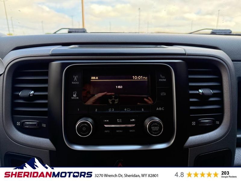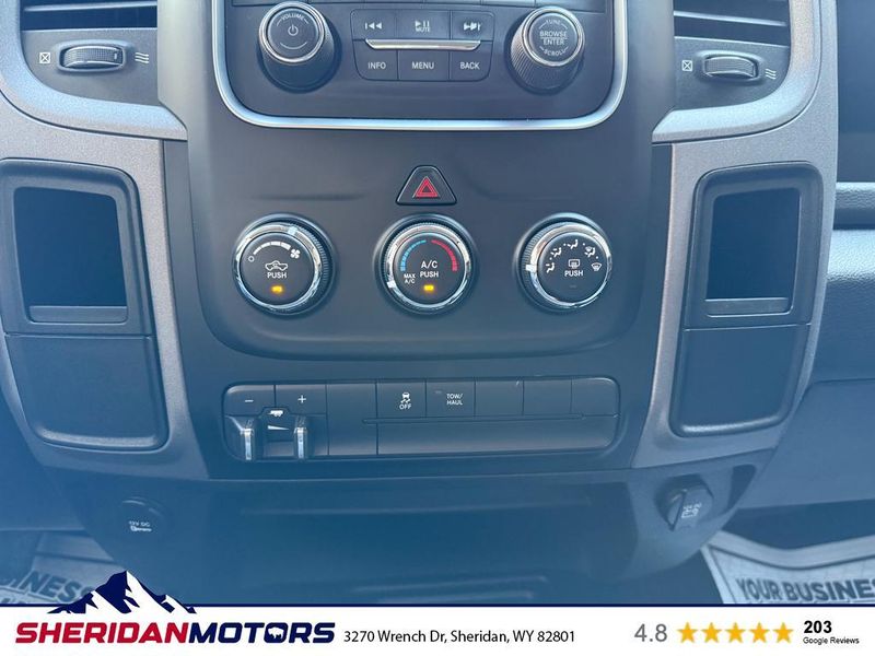 Quick Order Package 22A Tradesman: Front Armrest with Cupholders; 3.73 Axle Ratio. Popular Equipment Group: SiriusXM Satellite Radio; Cloth 40/20/40 Bench Seat; Carpet Floor Covering; Front and Rear Floor Mats; Remote Keyless Entry. Protection Group: Tow Hooks; Transfer Case Skid Plate Shield. Trailer Brake Control. Uconnect 3.0 Radio. SiriusXM Satellite Radio. **Equipment listed is based on original vehicle build and subject to change. Please confirm the accuracy of the included equipment by calling the dealer prior to purchase.**