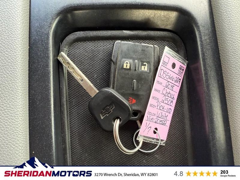 2018 Chevrolet Silverado 2500 Work Truck 4WD V8 6.0L ? Sheridan WY ? Best Price Tough, reliable, and priced to move ? this 2018 Chevrolet Silverado 2500 Work Truck with 4WD and the powerful V8 6.0L gasoline engine is ready for heavy-duty hauling, towing, and Wyoming roads. Located in Sheridan WY, this Chevrolet Silverado offers rugged capability combined with comfort and convenience features that make it a smart choice for contractors, ranchers, or anyone who demands performance and value. Key features include a CARFAX Clean Report, giving you confidence in its history, Hands Free Bluetooth for safe phone calls and audio streaming on the go, and a Back-Up Camera to help with precision when parking or hitching a trailer. The 4WD system delivers traction in snow, mud, and rough terrain, while the stout V8 6.0L engine supplies the low-end torque needed for towing and payload duties. Built as a Work Truck, this Chevrolet Silverado focuses on durability and utility without sacrificing essential modern amenities. This truck is competitively priced ? offering the best price in the area ? and represents excellent value for a heavy-duty pickup with a clean history and practical tech features. If you need a dependable 2500-series pickup in Sheridan WY that?s ready to work today, this Chevrolet Silverado is worth a close look. Contact us to schedule a test drive and see why this is the best-priced option on the market.