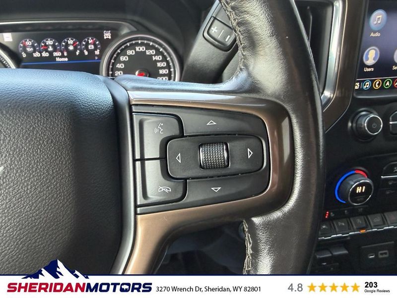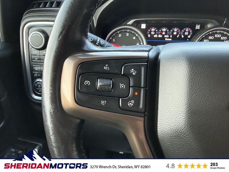 Preferred Equipment Group 3LZ: Chrome Assist Steps; Driver Memory; Hitch Guidance; Perforated Leather Appointed Seat Trim; Power Sliding Rear Window with Rear Defogger; Ultrasonic Front and Rear Park Assist; Theft Deterrent System (unauthorized Entry); Compass; Heated Steering Wheel; 120-Volt Instrument Panel Power Outlet; Heated Driver and Front Passenger Seats; Wireless Charging; Front Bucket Seats; Color-Keyed Carpeting Floor Covering; OnStar and Chevrolet Connected Services Capable; 8" Driver Information Center; 2nd Row Heated Outboard Seats; Power Front Passenger Windows with Express Up/down; Front Carpeted Floor Mats; Rear Carpeted Floor Mats; Painted Mirror Caps; Power Rear Windows with Express Down; Integrated Trailer Brake Controller; Chrome Grille; Ventilated Driver and Front Passenger Seats; Leather Wrapped Steering Wheel; Manual Tilt/telescoping Steering Column; 275/60R20SL AT BW Tires; Auto-Dimming Inside Rearview Mirror; HD Rear Vision Camera; LED Cargo Area Lighting; Bluetooth For Phone; Remote Vehicle Starter System; Advanced Trailering System; 5.3L EcoTec3 V8 Engine; Floor Mounted Console; 170 Amp Alternator; Auxiliary External Transmission Oil Cooler; Trailer Tire Pressure Monitor System; Electrical Lock Control Steering Column; Trailering Package; Up-Level Rear Seat with Storage Package; Rear Cross Traffic Alert; Front LED Fog Lamps; Chrome Recovery Hooks; Steering Wheel Audio Controls; Universal Home Remote; 2-Speed Transfer Case; Deep-Tinted Glass; 10-Way Power Driver Seat with Lumbar; Chevytec Spray-On Black Bedliner; Lane Change Alert with Side Blind Zone Alert; Dual Exhaust with Polished Outlets; Electronic Cruise Control; HD Radio; SiriusXM Radio; Hitch Guidance with Hitch View; Power Front Windows with Driver Express Up/down; Rear Dual USB Charging-Only Ports; Keyless Open and Start; 10-Way Power Passenger Seat Adjuster with Lumbar; Outside Heated Power-Adjustable Mirrors; Rear Wheelhouse Liners; 12-Volt Rear Auxiliary Power Outlet; Heavy-Duty Rear Locking Differential; Power Door Locks; 20" X 9" Painted Aluminum Wheels. **Equipment listed is based on original vehicle build and subject to change. Please confirm the accuracy of the included equipment by calling the dealer prior to purchase.**