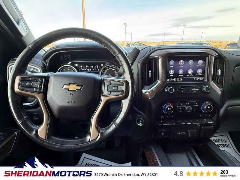 Experience the perfect blend of power and luxury with the 2019 Chevrolet Silverado 1500 High Country, now available for sale. This impressive pickup boasts a robust V8, 5.3L engine combined with a 4WD system, ensuring you?re ready for any adventure, on or off the road. Designed for those who appreciate comfort and technology, this Chevrolet Silverado features a heated steering wheel and steering wheel audio controls, making every drive a pleasure, even on the coldest days. Stay connected and entertained with Hands Free Bluetooth and Apple CarPlay, allowing seamless integration of your favorite apps and music. Navigate your journeys with confidence using the built-in navigation system, ensuring you reach your destination with ease. The High Country trim offers a premium driving experience, with attention to detail and high-quality materials throughout the interior. Whether you?re towing, hauling, or just cruising, the 2019 Chevrolet Silverado 1500 High Country delivers performance and style. Don?t miss the opportunity to own this exceptional truck that combines rugged capability with modern amenities. Visit us today to take a test drive and discover why the Chevrolet Silverado High Country is the right choice for you.