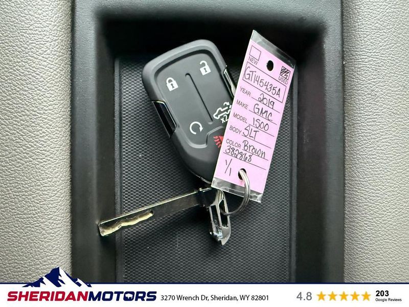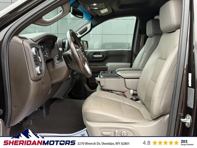 2019 GMC Sierra 1500 SLT 4WD ? V8 6.2L, Sheridan WY. CARFAX 1-Owner, premium leather seats, and powerful performance make this GMC Sierra a standout choice for drivers who demand capability and comfort. The proven 6.2L V8 gasoline engine delivers robust towing and confident highway passing, while four-wheel drive ensures traction in Wyoming winters and off-road excursions. Inside, enjoy luxury touches like leather seating, steering wheel audio controls, and hands-free Bluetooth for safer, more connected driving. Android Auto integration brings your favorite navigation, music, and messaging apps to the intuitive infotainment screen for seamless smartphone access. Practical features and tech combine for long trips, daily commutes, and weekend adventures. This GMC Sierra 1500 SLT comes with a clean CARFAX 1-Owner history and has been inspected to meet high-quality standards. Located in Sheridan WY, this truck is competitively priced ? listed as the best price in the area for comparable models ? giving exceptional value for a fully equipped, low-history pickup. Whether you need serious towing capability, rugged 4WD performance, or a refined interior with modern connectivity, this 2019 GMC Sierra 1500 SLT delivers. Contact us today to schedule a test drive in Sheridan WY and secure the best-priced GMC Sierra available.