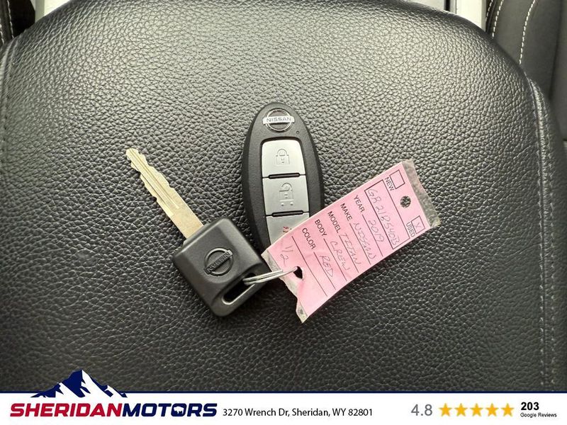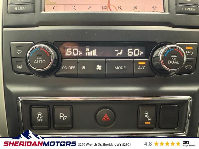 SV Convenience Package: Auto On/off Headlights; 20" X 7.5" Painted Alloy Wheels; Leather Wrapped Steering Wheel; Front and Rear Parking Sensors; Chrome Interior Door Locks; Nissan Navigation System Radio with Voice Guidance; Convex Spotter Mirror; Blind Spot Warning with Rear Cross Traffic Alert; Rear HVAC Vents; Painted Rear Bumper; 2 Illuminated USB-A Ports in Back of Center Console; Intelligent Key System; Power Slide Rear Window with Defogger; Rain Sensing Wipers; Universal Garage Door Opener; Auto Dual Zone HVAC; Heated Front Captain's Seats with Center Console; Auto-Dimming Rearview Mirror. Splash Guards. Carpet Floor Mats. **Equipment listed is based on original vehicle build and subject to change. Please confirm the accuracy of the included equipment by calling the dealer prior to purchase.**