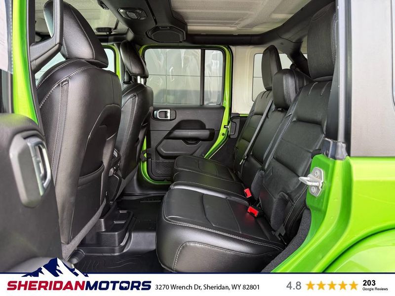 Never get into a cold vehicle again with the remote start feature on this vehicle. This unit features a hands-free Bluetooth phone system. The rear parking assist technology on this unit will put you at ease when reversing. The system alerts you as you get closer to an obstruction. This vehicle comes equipped with Android Auto for seamless smartphone integration on the road. Enjoy the heated seats in this Jeep Wrangler you will never buy a vehicle without them. Everyone loves the comfort of having a warm seat on those cold winter days. Keep your hands warm all winter with a heated steering wheel in this unit . The installed navigation system will keep you on the right path. See what's behind you with the back up camera on this vehicle. The leather seats in this mid-size suv are a must for buyers looking for comfort, durability, and style. The Jeep Wrangler offers Automatic Climate Control for personalized comfort.