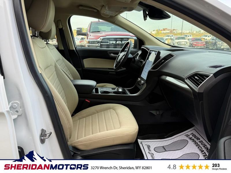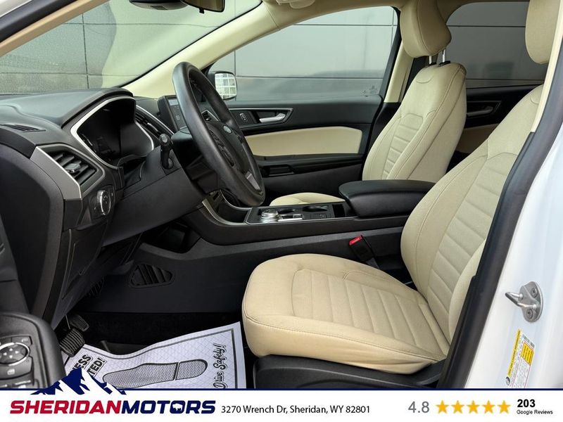 This mid-size suv offers Automatic Climate Control for personalized comfort. Never get into a cold vehicle again with the remote start feature on this Ford Edge. This 2021 Ford Edge warns of approaching vehicles with Cross-Traffic Alert. The state of the art park assist system will guide you easily into any spot. It offers Android Auto for seamless smartphone integration. This mid-size suv features a hands-free Bluetooth phone system. Apple CarPlay: Seamless smartphone integration for it - stay connected and entertained on the go! See what's behind you with the back up camera on this unit. This unit has a 4 Cyl, 2.0L high output engine. Set the temperature exactly where you are most comfortable in the vehicle. The fan speed and temperature will automatically adjust to maintain your preferred zone climate. It is equipped with all wheel drive. This Ford Edge shines with clean polished lines coated with an elegant white finish.