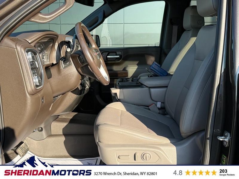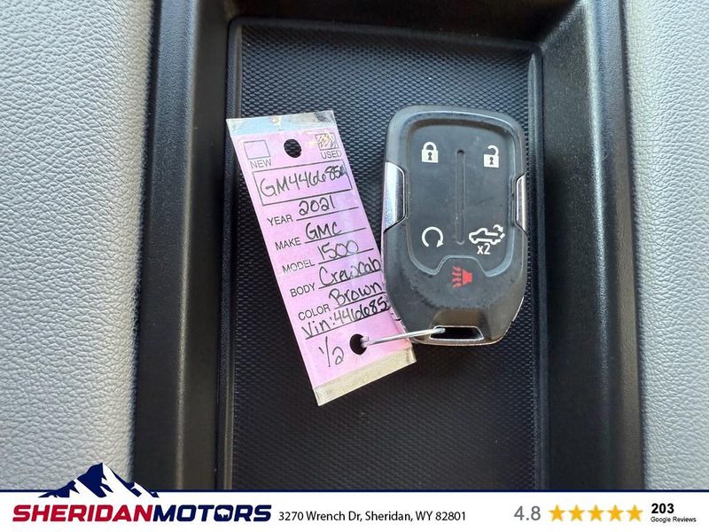 The leather seats in the GMC Sierra are a must for buyers looking for comfort, durability, and style. This vehicle keeps you comfortable with Auto Climate. Bluetooth technology is built into the GMC Sierra, keeping your hands on the steering wheel and your focus on the road. Never get into a cold vehicle again with the remote start feature on the GMC Sierra. See what's behind you with the back up camera on the vehicle. This vehicle comes equipped with Android Auto for seamless smartphone integration on the road. An off-road package is equipped on this 1/2 ton pickup. The steering wheel audio controls on this 1/2 ton pickup keep the volume and station within easy reach. Keep your hands warm all winter with a heated steering wheel in this 2021 GMC Sierra 1500 . Apple CarPlay: Seamless smartphone integration for the GMC Sierra - stay connected and entertained on the go!
