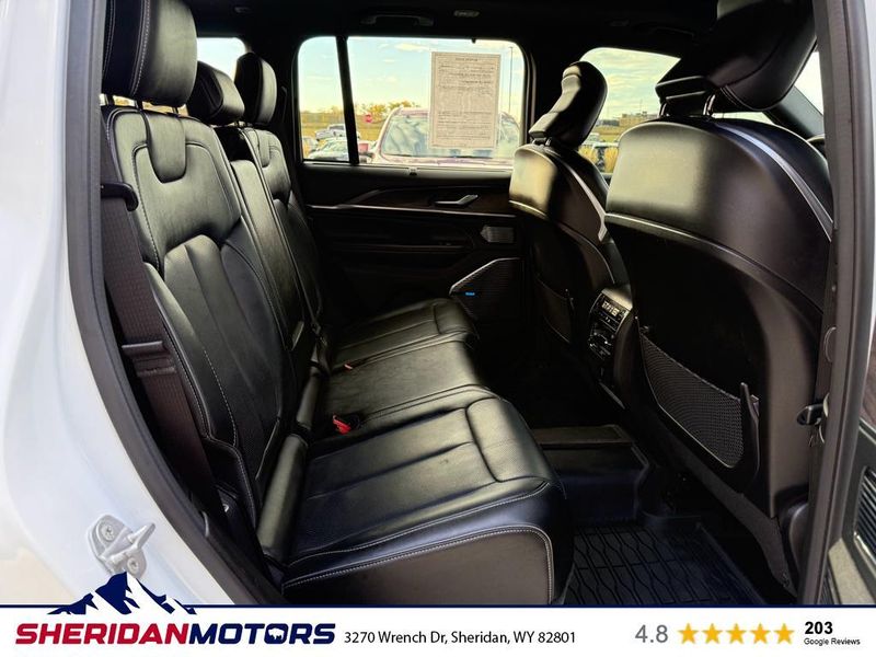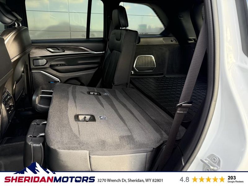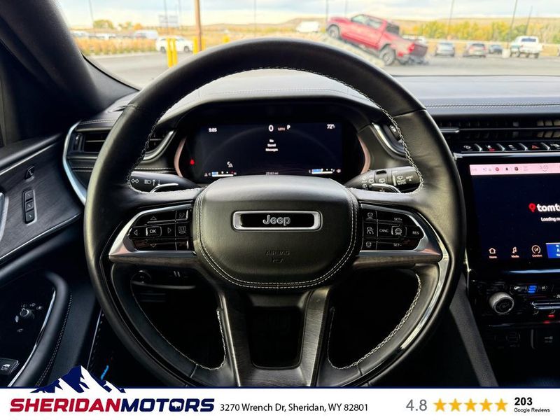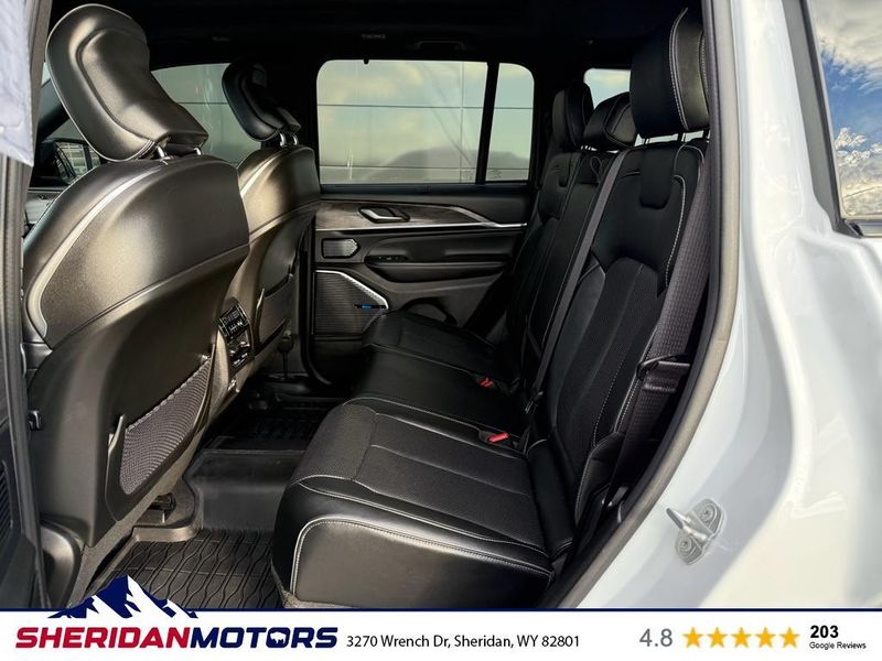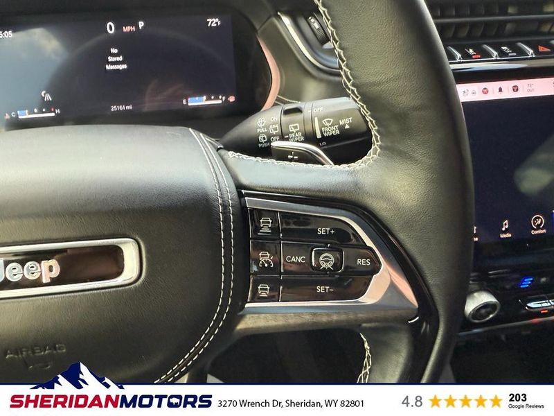 Luxury Tech Group IV: Auto Temp Control with 4-Zone Temp Control; Power Front Passenger Seatback Massage; 2nd-Row Manual Window Shades; Wireless Charging Pad; Power Driver Seatback Massage; Nappa Leather Seats; 12-Way Power Adjust Front Passenger Seat; Passenger Seat Memory; Rearview Autodim Digital Display Mirror; 12-Way Power Adjust Driver Seat. ADV Protech Group III: Active Driving Assist System; Integrated Off-Road Camera; Surround View Camera System; Head Up Display; Rear Back-Up Camera Washer; Map-In-cluster Display; Intersection Collision Assist System; Highway Assist System; Night Vision with Pedestrian-Animal Detection. Quick Order Package 22N. MOPAR Finishing Package: MOPAR Rear Splash Guards with Jeep Logo; MOPAR Paint Protection Film; MOPAR Front Splash Guards. Uconnect 5 Nav with 10.1" Display Radio. **Equipment listed is based on original vehicle build and subject to change. Please confirm the accuracy of the included equipment by calling the dealer prior to purchase.**