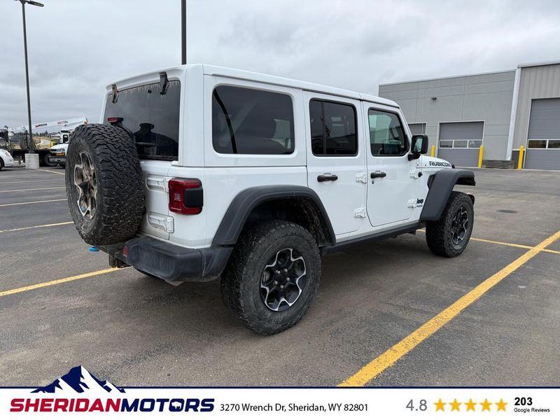 For sale in Sheridan, WY: 2022 Jeep Wrangler Unlimited Rubicon with just 22,530 miles ? low mileage, rugged capability, and the best price in the area. This 4WD Jeep Wrangler combines iconic off-road capability with modern efficiency thanks to its 4?cylinder, 2.0L Plug?in Hybrid Electric (PHEV) powertrain. Enjoy electric-assisted driving for short commutes and seamless gas-electric performance for longer adventures. Equipped for convenience and safety, this Rubicon features Navigation, a Back-Up Camera, Hands Free Bluetooth, and XM Radio for entertainment on every drive. The CARFAX Clean Report provides added confidence in the vehicle?s history and condition. The Unlimited model delivers spacious rear seating and extra cargo room, perfect for family trips or gear hauling. Built to tackle Wyoming terrain, the Rubicon?s 4WD system, rugged suspension, and durable construction are ready for trails, mountain passes, or winter roads. With its low odometer reading and the best price nearby, this 2022 Jeep Wrangler Unlimited Rubicon represents exceptional value for drivers who want capability and efficiency in one package. Located in Sheridan, WY ? schedule a test drive today to experience the unique blend of off-road readiness and hybrid efficiency. Financing options are available. Act now before this low-mileage Rubicon is gone.