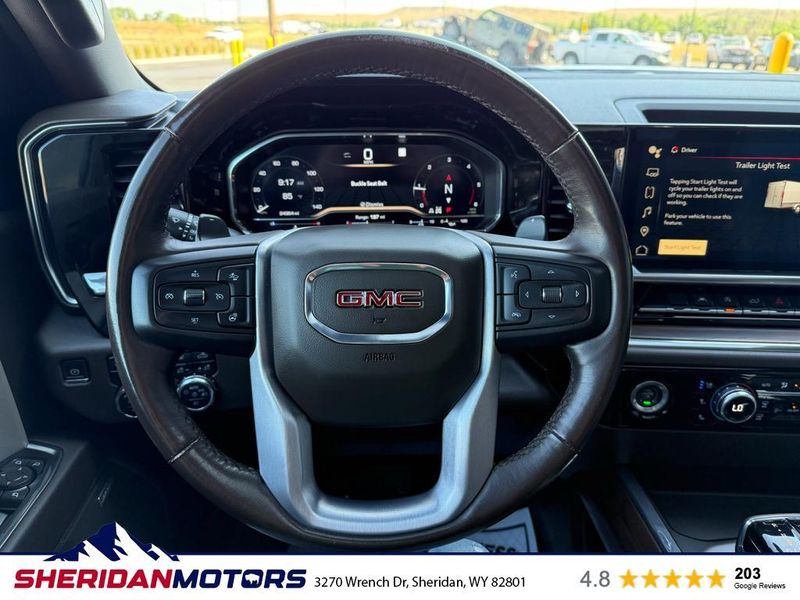 Introducing the 2023 GMC Sierra 1500 SLT, a robust yet refined pickup, now available for discerning drivers seeking a blend of power and sophistication. With only 24,962 miles on the odometer, this one-owner vehicle comes with a clean CARFAX report, ensuring peace of mind and reliability. Equipped with a 6-cylinder, 3.0L engine and 4WD, this GMC Sierra 1500 SLT delivers impressive performance and adaptability across various terrains, whether you're navigating city streets or venturing off the beaten path. The automatic climate control ensures a comfortable cabin environment, tailored to your preferences regardless of the weather outside. Inside, the cabin marries functionality with luxury, featuring steering wheel audio controls for seamless access to your entertainment options. Enjoy a wide array of channels with XM Radio, making every drive both enjoyable and engaging. The interior is designed to provide both driver and passengers with ample space, comfort, and convenience. This 2023 GMC Sierra 1500 SLT is not just a vehicle; it's a statement of strength and style. It's ready to meet the demands of your active lifestyle, offering a commendable blend of performance, technology, and durability. Experience the difference today with this meticulously maintained pickup truck.