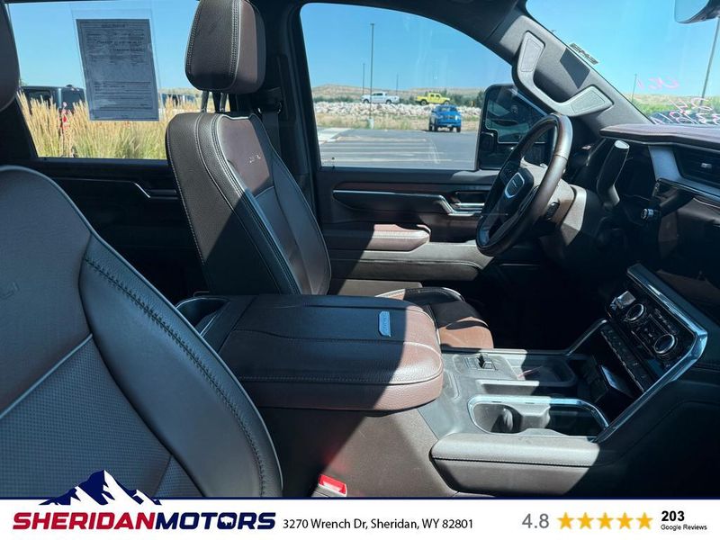 Preferred Equipment Group 5SA: LED Cargo Area Lighting; Trailer Side Blind Zone Alert; SiriusXM with 360L; Remote Vehicle Starter System; Power Sliding Rear Window with Defogger; Safety Alert Seat; Ultrasonic Front and Rear Park Assist; Trailer Camera Provisions; Electric Rear-Window Defogger; Floor-Mounted Center Console; Signature Chrome Denali Grille; Unauthorized Entry Theft-Deterrent System; Bed View Camera with Two Trailer Camera Provisions; Front Rain-Sensing Wipers; Sierra HD Pro Safety; Wireless Phone Projection; 2 USB Ports; Rear Cross Traffic Alert; 120-Volt Instrument Panel Power Outlet; 2 Charge/data USB Ports Inside Center Console; LED Smoked Amber Roof Marker Lamps; Heated Driver and Front Outboard Passenger Seats; Wireless Charging; X31 Off-Road Package; Steering Wheel Audio Controls; 2 Charge-Only Rear USB Ports; Universal Home Remote; 120-Volt Bed Mounted Power Outlet; Heated 2nd Row Outboard Seats; Power Front Windows with Passenger Express Up/down; Bose Premium 7-Speaker Sound System; 2-Speed Active Transfer Case; Deep-Tinted Glass; Spray-On Pickup Bedliner with Denali Logo; Integrated Trailer Brake Controller; HD Surround Vision; Ventilated Driver and Front Passenger Seats; Manual Tilt-Wheel/telescoping Steering Column; Keyless Open and Start; ProGrade Trailering System; Push Button Start; Rear Wheelhouse Liners; Polished Exhaust Tip. Denali Reserve Package: Power Sunroof. Technology Package: Multicolor 15" Diagonal Head-Up Display; Auto-Dimming Inside Rearview Mirror with Camera; Adaptive Cruise Control. Power-Retractable Assist Steps. Power Sunroof. Gooseneck/5th Wheel Prep Package. Downpour Metallic. Hitch Package. Black Front and Rear Molded Splash Guards. Premium Front Floor Liners with Removable Carpet Insert. **Equipment listed is based on original vehicle build and subject to change. Please confirm the accuracy of the included equipment by calling the dealer prior to purchase.**